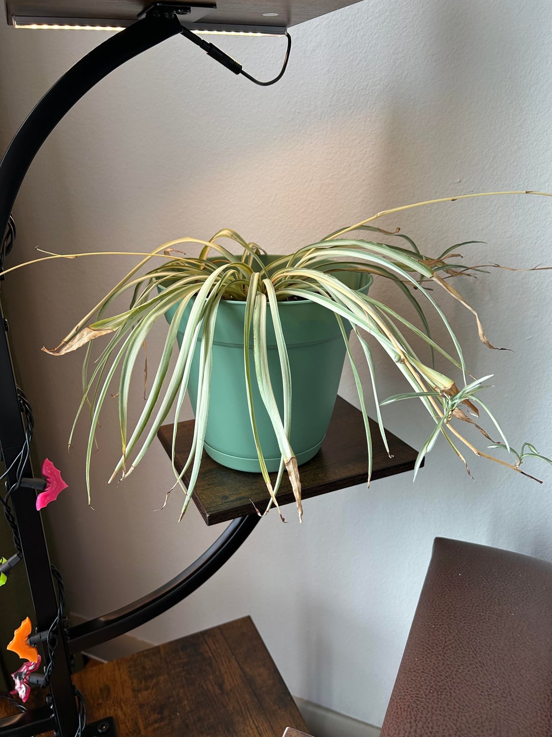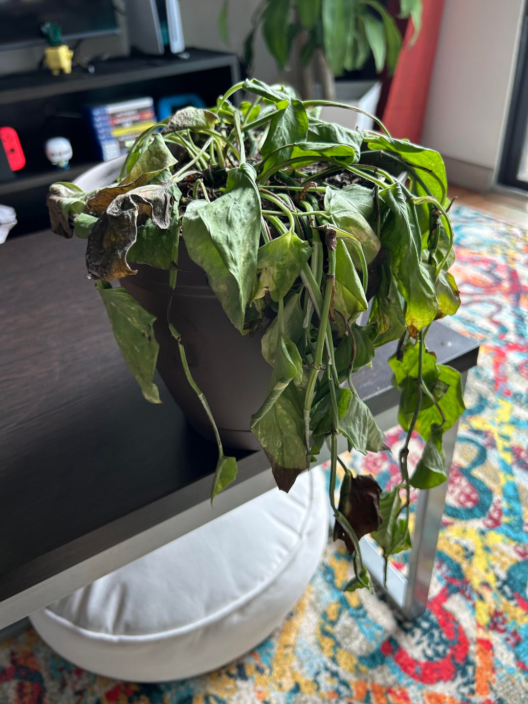 I’m new to keeping live plants, and I have no clue what to do for these guys 🙁 the pothos is so droopy with some black leaves. The spider plant is super flat and not as green as it should be 🙁 I wanted them about once a week with rain water and there’s no way light is an issue since they’re near a window and if it’s not sunny out, I have while LEDs above them. Please help 🙁