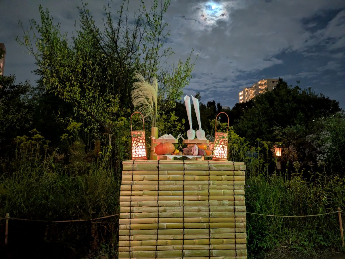 The event began on October 6 with a moon-offering ceremony beneath the wisteria trellis. Staff arranged pyramids of tsukimi dango alongside chestnuts and seasonal vegetables while a local performer played the shinobue flute. Music floated through the air, a scene that could have come straight from the Heian court.
