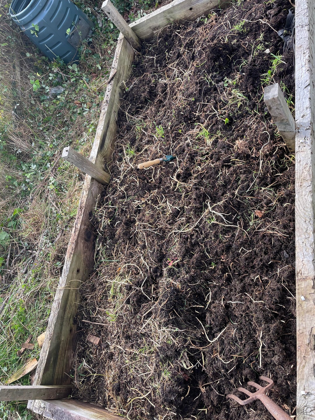 Fill with compost, then cover with weed suppressant for the winter. Will be ready to go by Spring.