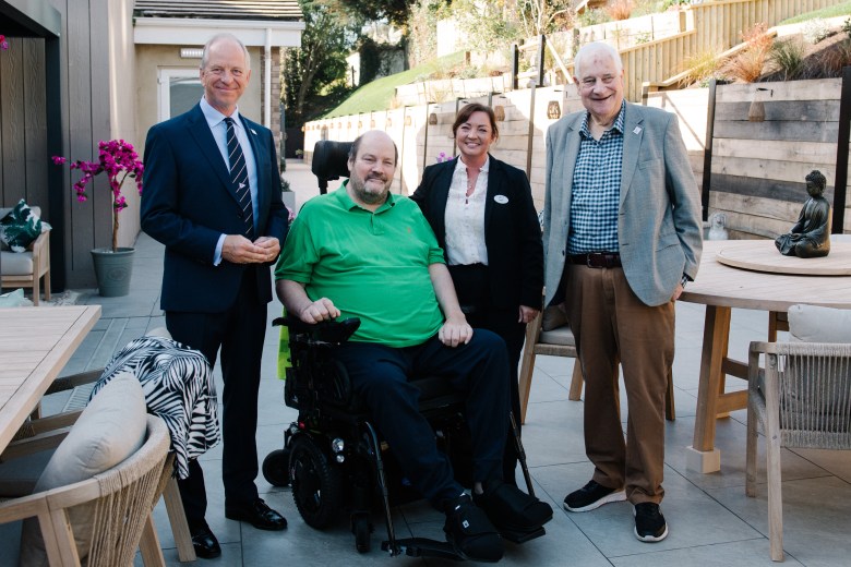 Pictured: Vice Admiral Sir Jerry Kyd, Governor of Jersey, who officially opened the garden, with Jersey Cheshire Home resident Stephen Mahoney, CEO Donna Abelm and Chairman Jim Hopley MBE. (Robbie Dark)