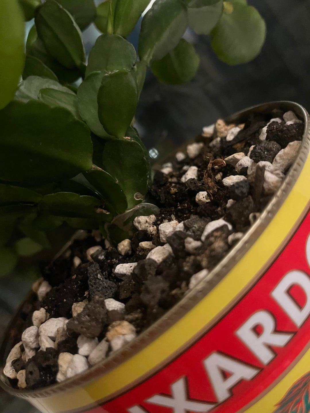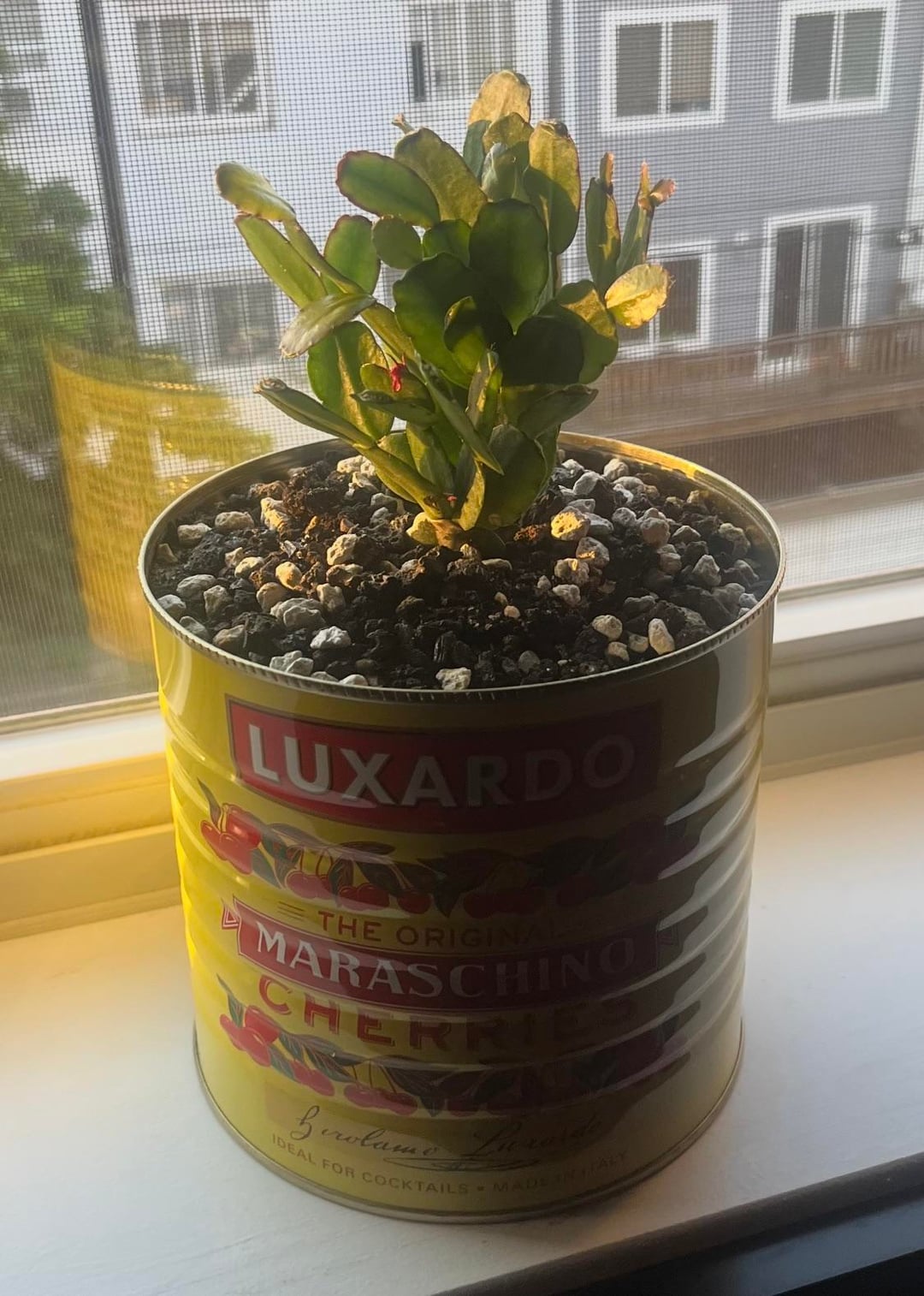 It looks super healthy to me! Especially for being in a metal can (possibly without drainage)!