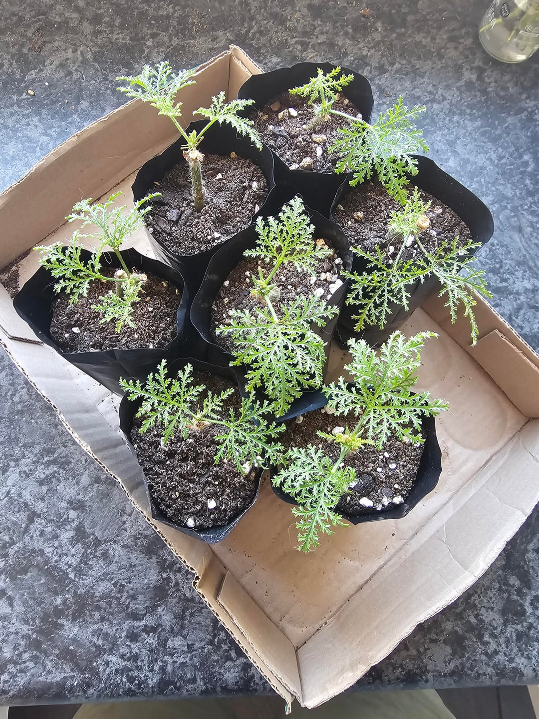 I've struggled for ages to improve my success rate propagating various Pelargonium species from stem cuttings. Today, I felt redeemed because I was able to pot multiple rooted cuttings. Yay!