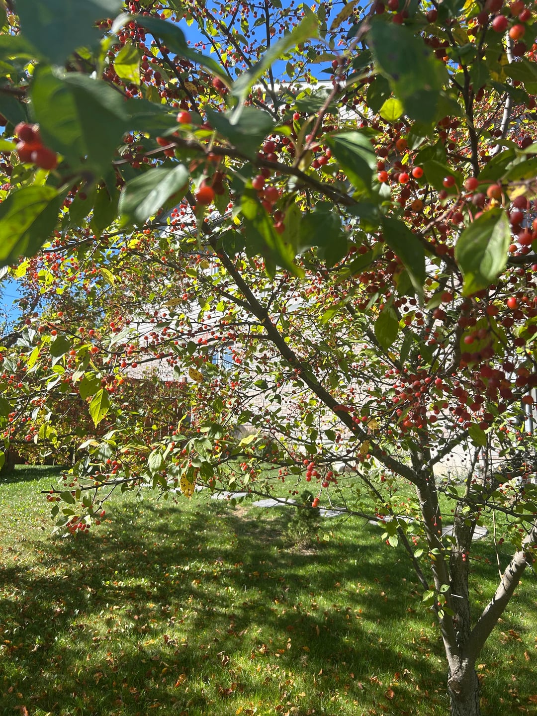 Looks like Malus baccata, or the Siberian crabapple, is a hardy, deciduous tree native to Asia, known for its fragrant white flowers and small, edible red or yellow fruit. It is highly cold-hardy, making it a valuable rootstock for other apple varieties, and is also grown ornamentally for its blossoms and wildlife attraction. The tree prefers full sun, moist, well-drained soil, and can tolerate a range of soil types and pH levels.