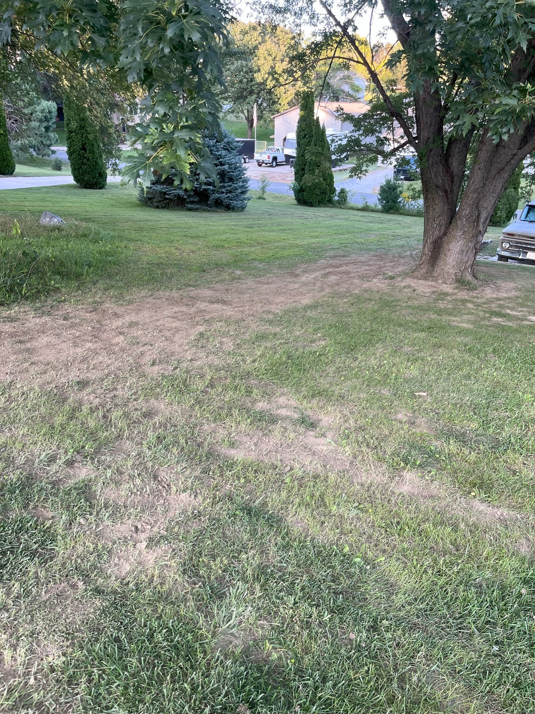 If it was my yard, at this time of year, I’d be throwing down about 15 pounds of long stem white clover. It germinates extremely fast and densly. Holds soil together well. Improves soil through nitrogen banking. Great for pollinators and grazing animals. Also really easy to kill with broadleaf weed control once the turf heals.