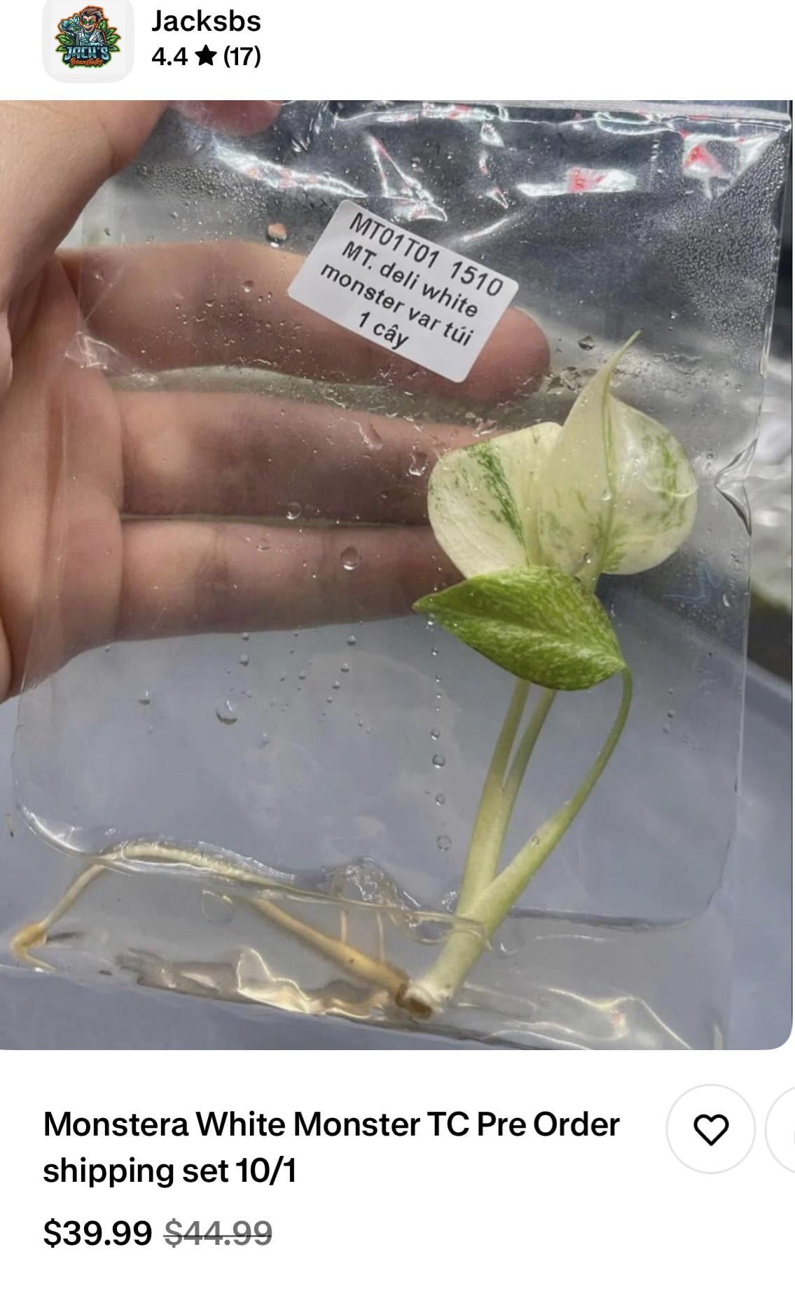 If you’ve never TC’d before there are so many cheaper options out there to learn and get the hang of it. And of corse lot of information on how to succeed. It can get addictive. I do not know this particular company. But I have seen white monsters go for half that on Palmstreet or orangelakenursery. The last 2 white monsters I purchased were under $18. Good luck