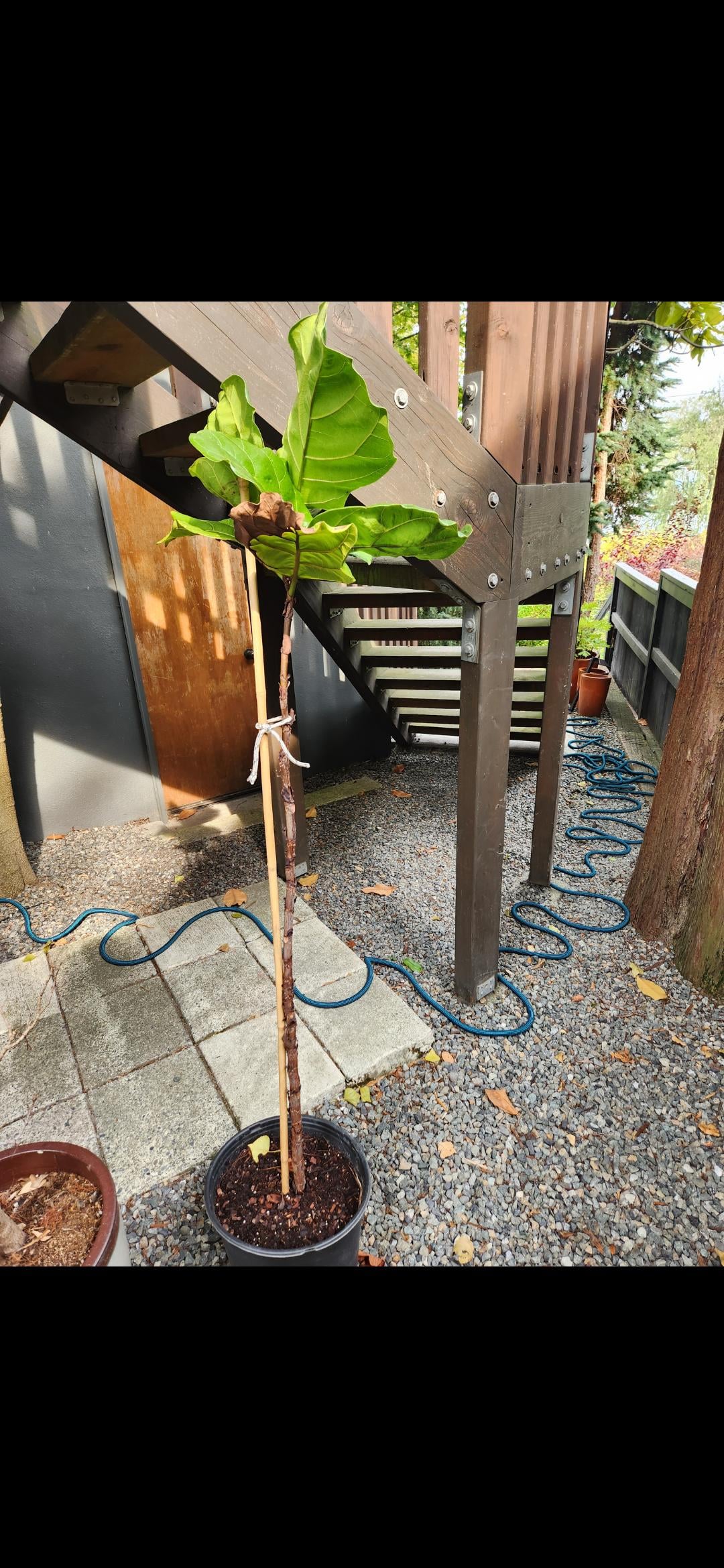 We rescued this fig after the previous owner left it while moving. We didn't initially know it was homeless and slowly watched it dying – until it was an emergency and we had to do something. It had two leaves left.