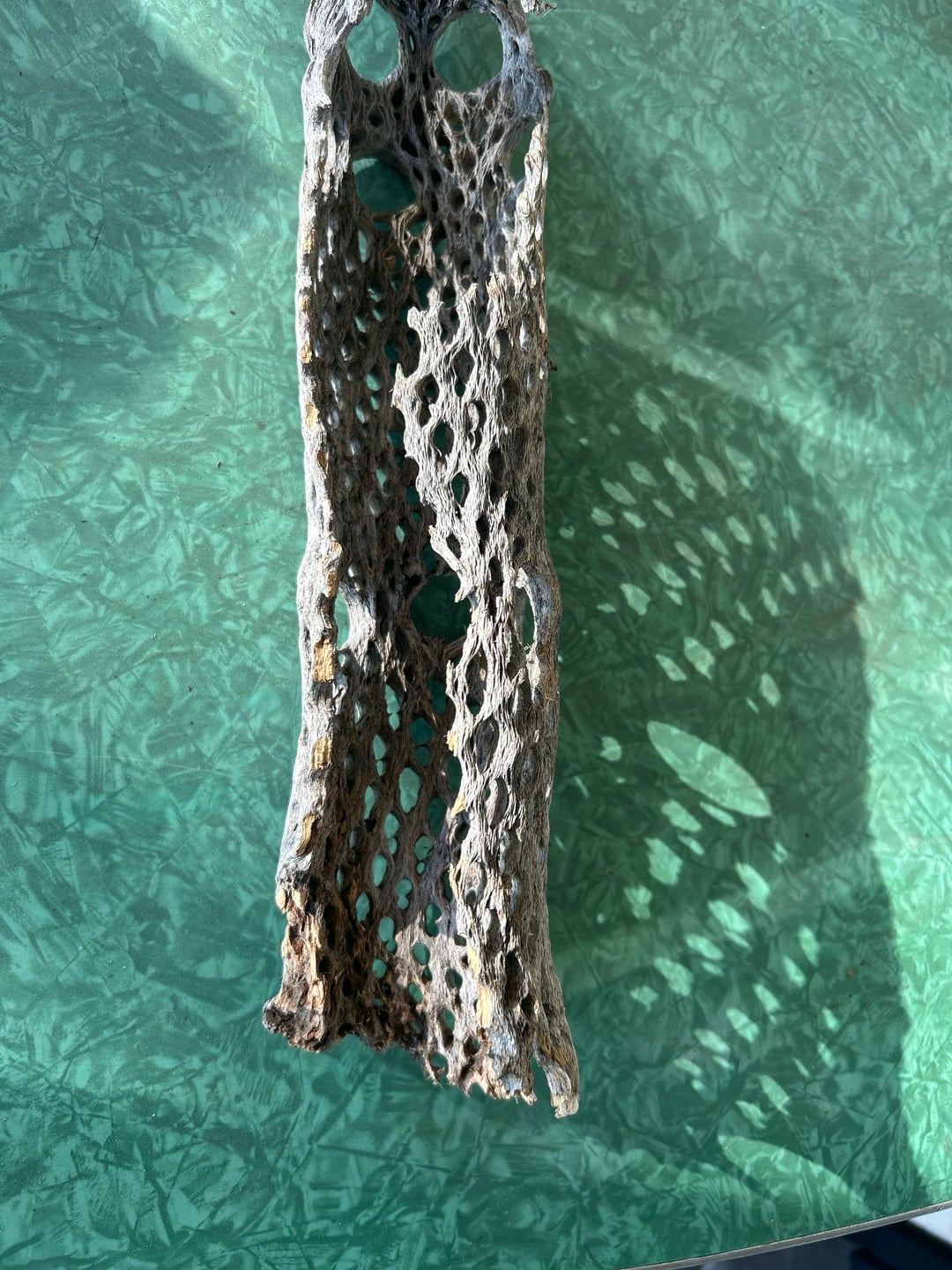 I had a bunch of prickly pear skeleton (this one’s a different cactus) that I picked up after a freeze melted them here. They’re equally as cool, and very delicate. I was cleaning clutter and binned them recently, and am still regretful.
