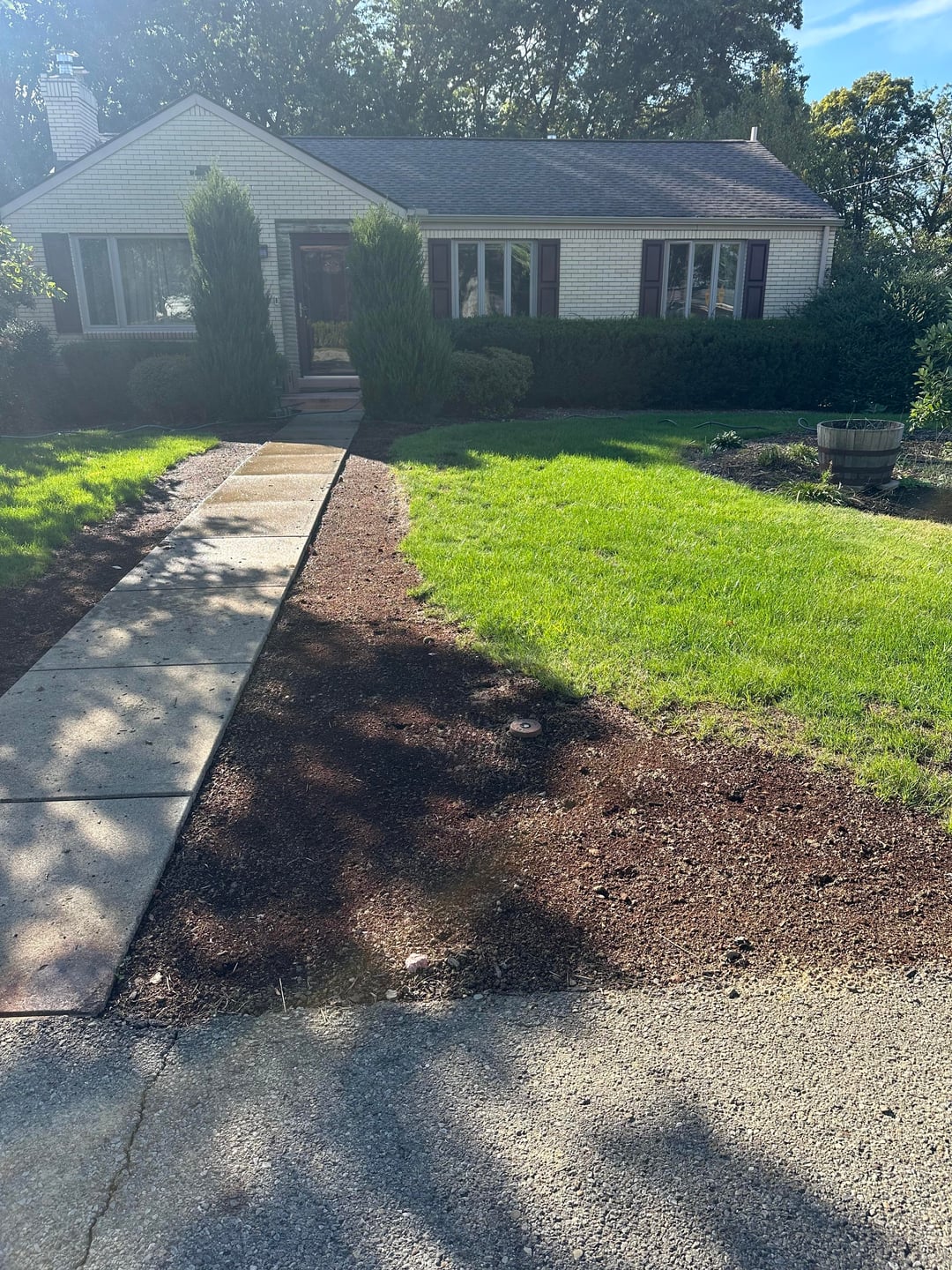 Would have looked good if you edged the mulch beds and put in some flowers and plants. The curved mulch bed going to the street always adds character to the house.