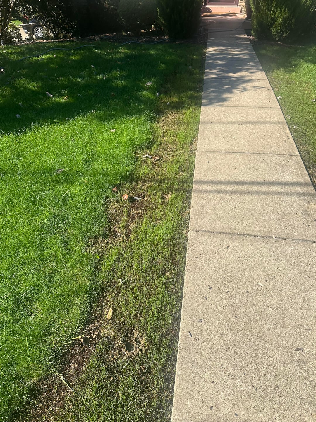 I wonder if the previous owner did that because they had trouble growing grass on the edges.