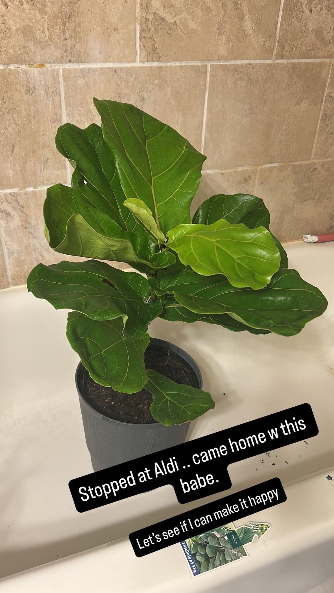 I thought it was in a plastic pot in the outside pot, but I just tried to take it out and realized it’s just one plastic pot with no drainage holes. Looks like the roots are at the top circling the pot above the soil. When I was trying to wiggle it out I also saw some moving bugs, maybe fungus gnats since the soil is pretty damp still. The leaves are perfect, sprayed some neem oil and don’t see any issues but the possible gnats. I know I should let it acclimate but I’m really worried about no drainage, should I just repot now? It’s only been a day, she’s in quarantine in the bathroom. Thoughts? Anyone else get an Aldi FLF?