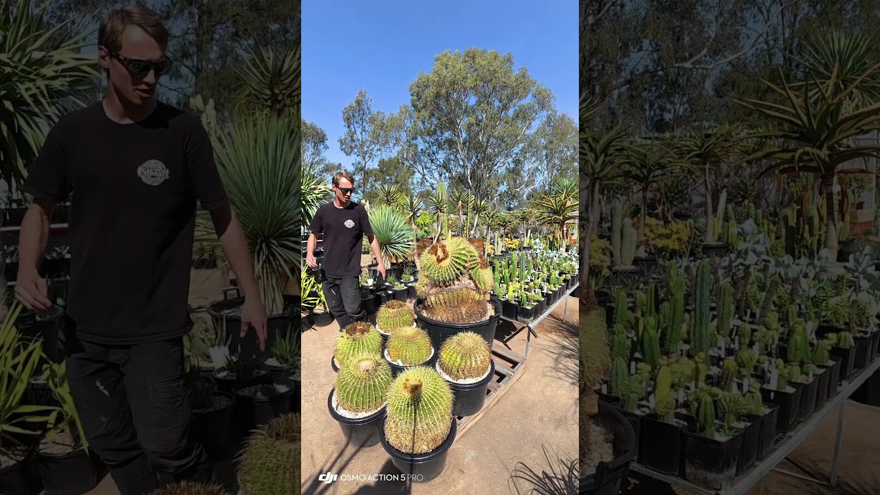This week’s cactus of the week is Echno Cactus Christini and otherwise known as golden barrel cactus or mother-in-law’s cushion. As you can hear, how is a bit of a mother-in-law’s cushion, but I don’t know how it got that name. This one is a little unusual. Normally, they go round and then they’ll offset when they’re older. But this one at some point in its life got damaged, burnt, or something happened to it and it’s shot three offsets from the top. These offsets have now either become squished or crested, making it a really unique plant. Now, let’s take a better look at this one. These guys origate originated from Mexico. And unfortunately, they’re critically endangered in their native habitat due to habitat loss and poaching. But luckily, these guys are very commonly used in landscaping. And you can find them right around the world. And this one, this big one in particularly is in particular is 30 years old and it come from Lockxton. When we got it, it was in an old wheelbar and we removed it and the wheelbarrow pretty much fell apart and somehow it say stayed supported. But yeah, come down to Tough Love Garden Supply and maybe take one of these beauties home for your own garden.