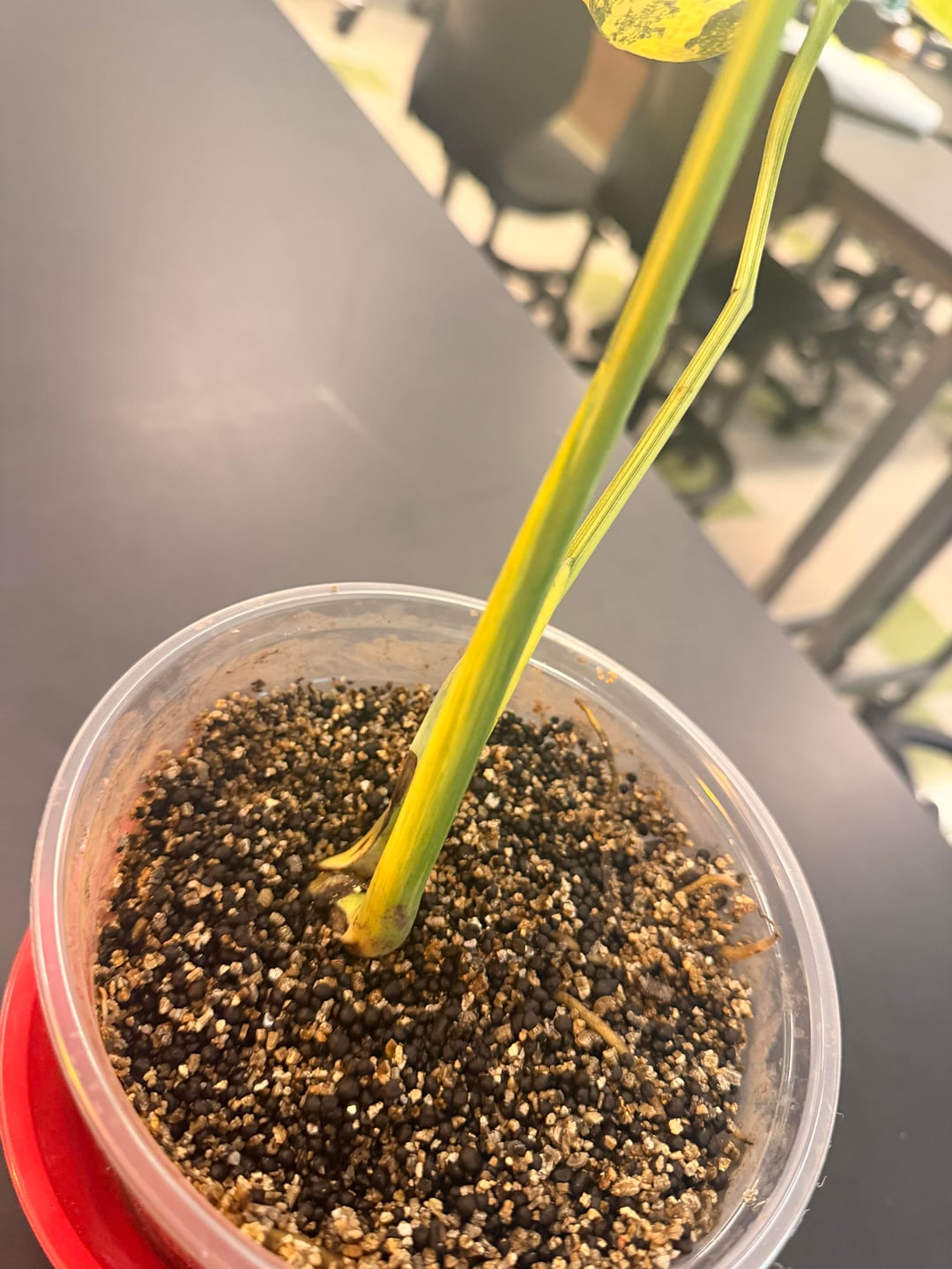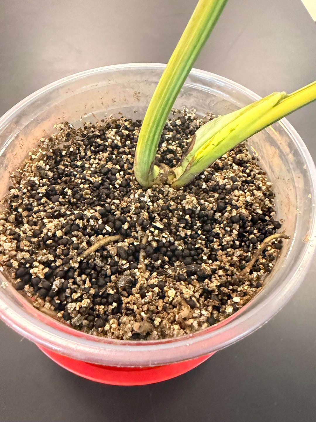 Hello All! I ordered this Monstera Deliciosa Pom Pom from a nursery that did special orders from Thailand. I received mine and it was very beat up. I had to let it reroot through a hydroponic system I have set up. After that I planted it in a stratum/perlite mix. It’s been two months and it has not pushed out a new leaf. I keep it in a mini classroom greenhouse where the temperature is consistently in the upper 80s and the humidity is always above 75 unless I have it open to do any watering. The roots have grown significantly. Should I repot in an Aroid mix? I was hoping to get a new leaf before repotting. Any help would be appreciated!
