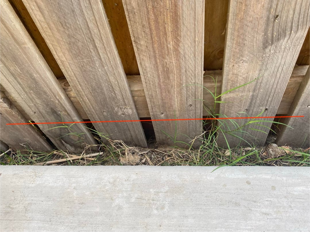 I’m think of cutting these palings off under the bottom rail (red line) just in my side only. Then putting some plastic type of lawn edging against neighbours palings then filling the gap. I get a lot of water sitting here from neighbours yard and worried about swelling under my slab. Cutting palings to get more room to fill and maybe run an ag-pipe type thing to help draining, just don’t have much of a slop that’s all. Up for suggestions.