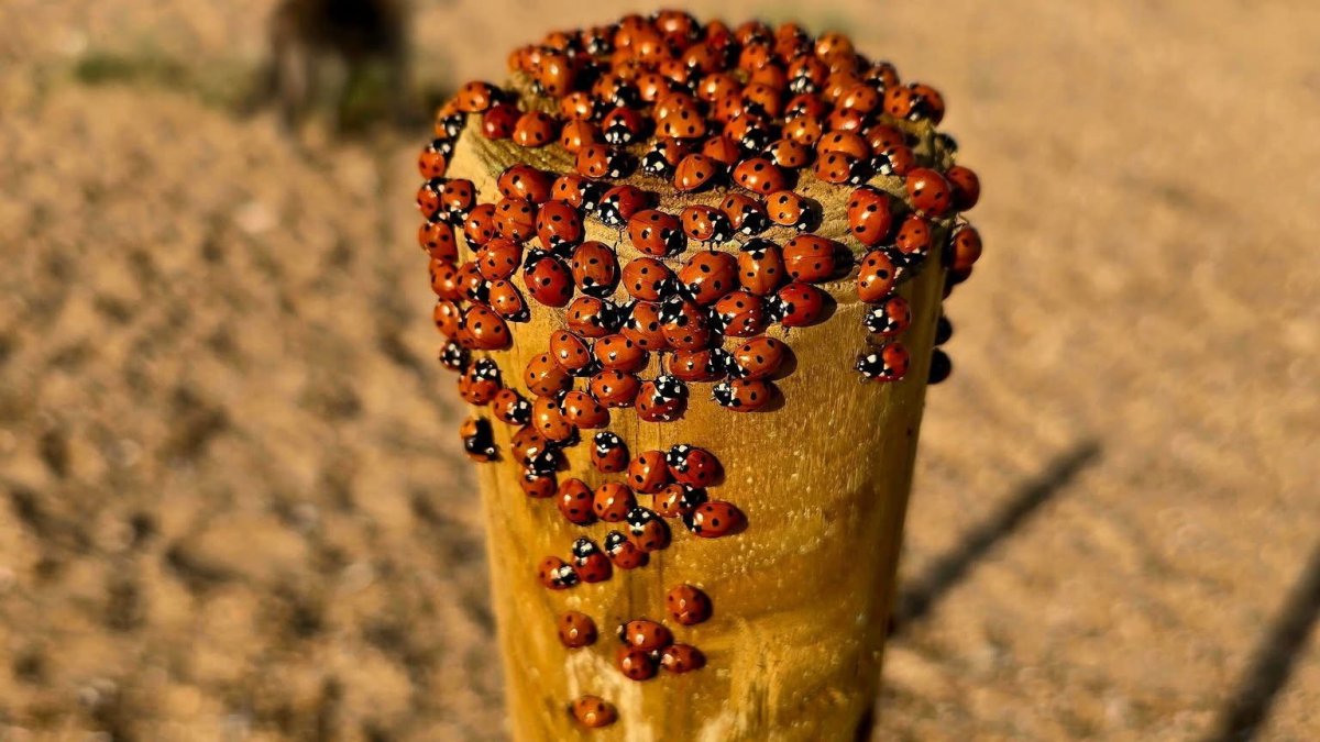 As they snuggle down they release an aggregation pheromone, a chemical scent that means they are safe and dry, and which attracts others to the security of whichever corner they have settled in. Drifts of many thousands are not uncommon. The chemical scent lingers and ladybirds will huddle in the same corners year on year. These are not the same individuals returning to a familiar home base, but the descendants (often by two or three generations) of those ladybirds that rested there last year. Others will be there again next year too.