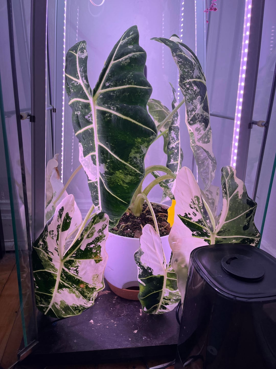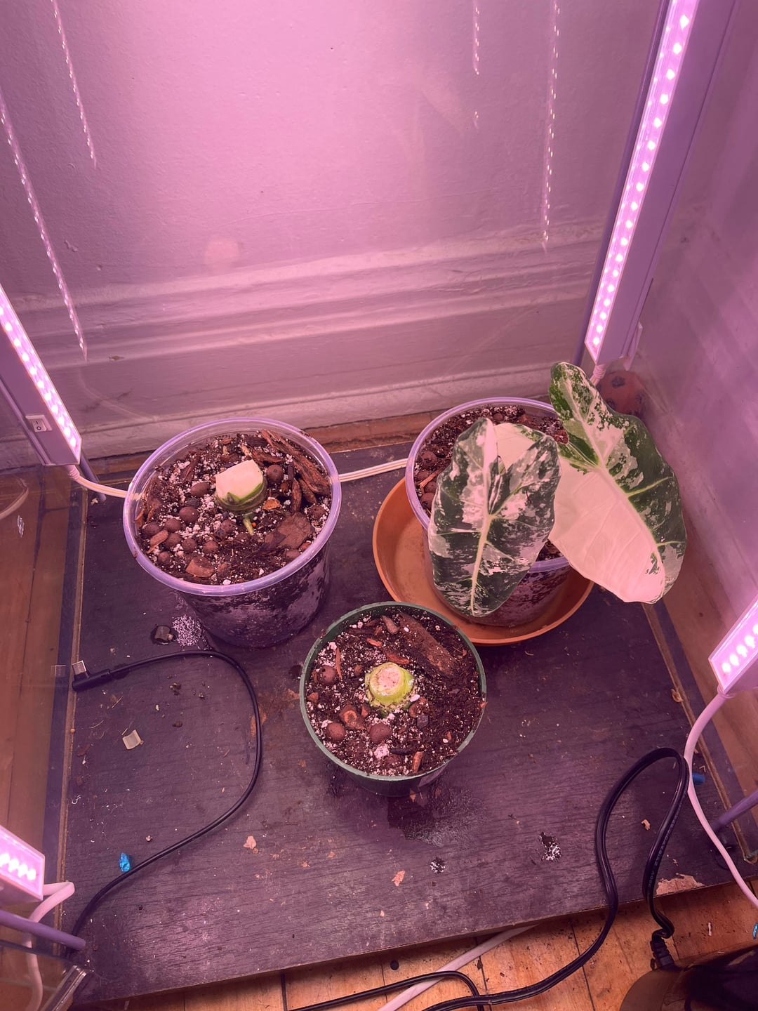 Swipe for the after. She was big and beautiful but she kept hitting the grow lights and getting burned. Some of the white areas were melting and looking sad. I originally just wanted to give her roots a trim but I got a little carried away.