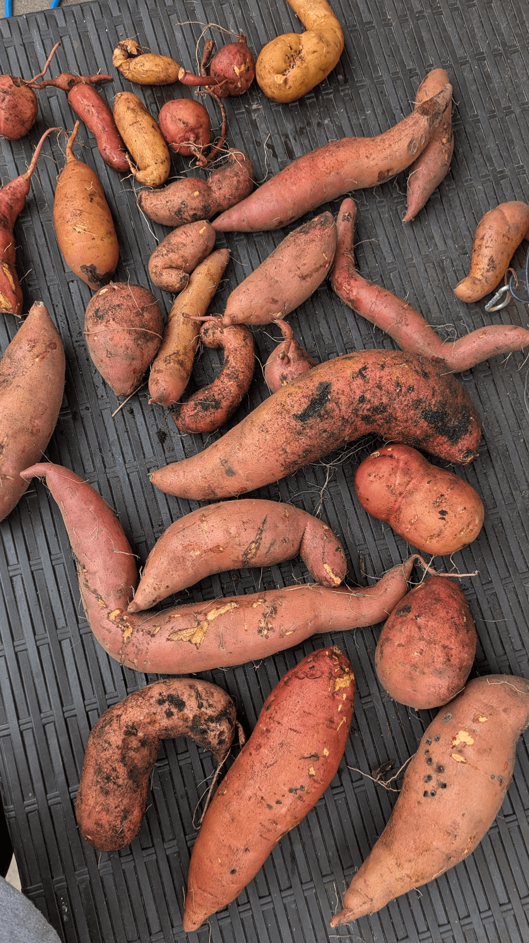 My first time growing sweet potatoes and what fun it was to dig these up!