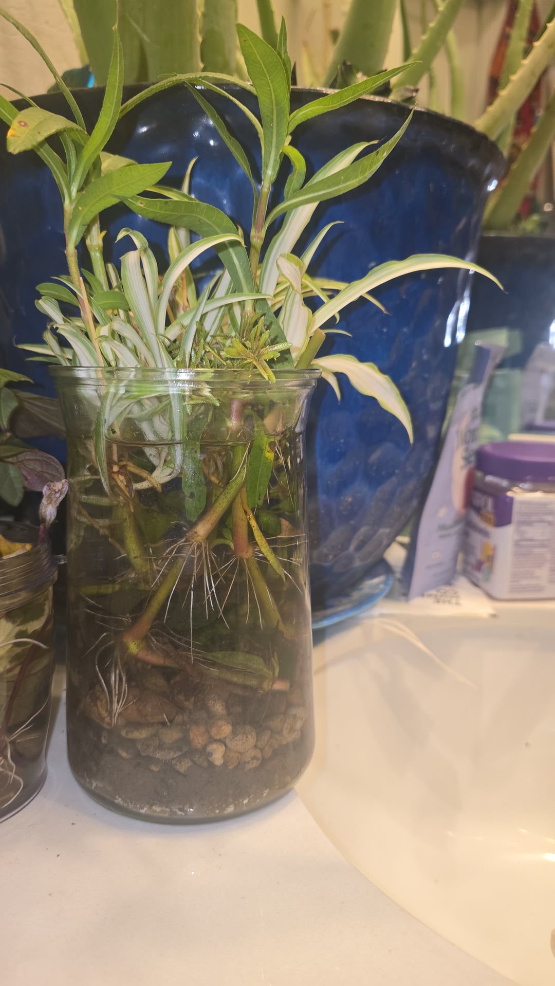 So i used substrate from a local wild marshmallow, topped them both with pea gravel and put in some wild aquatic plants as well as some cuttinga from my aquariums, and topped them off with some houseplants with their feet dangling in. Once theyre more established, i thought i may add some of the bladder snails from my aquarium(s). I was curious to see after some time what happened since I used wild dirt and some wild aquatic plants.