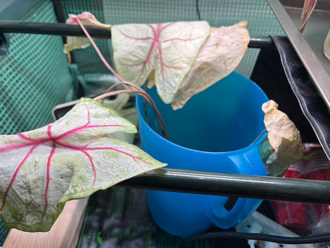 Now that we have covered how naive I am: I could seriously use some tips on how to rehab/pot up these sad babies. I didn’t think I needed to order a heat pack because it was hot out when I ordered 🫤 I got a Caladium candidum, and an Alocasia azlanii. The alocasia is a bit yellow but seems like it’ll be okay. The Caladium showed up very not okay. The moss ball was pretty much completely dry and the leaves feel like ancient tissue paper. I unboxed them yesterday and immediately got them in some water and light. Honestly not sure what to do next because I’m too scared to touch them. Please help I’m fucking dumb 😭