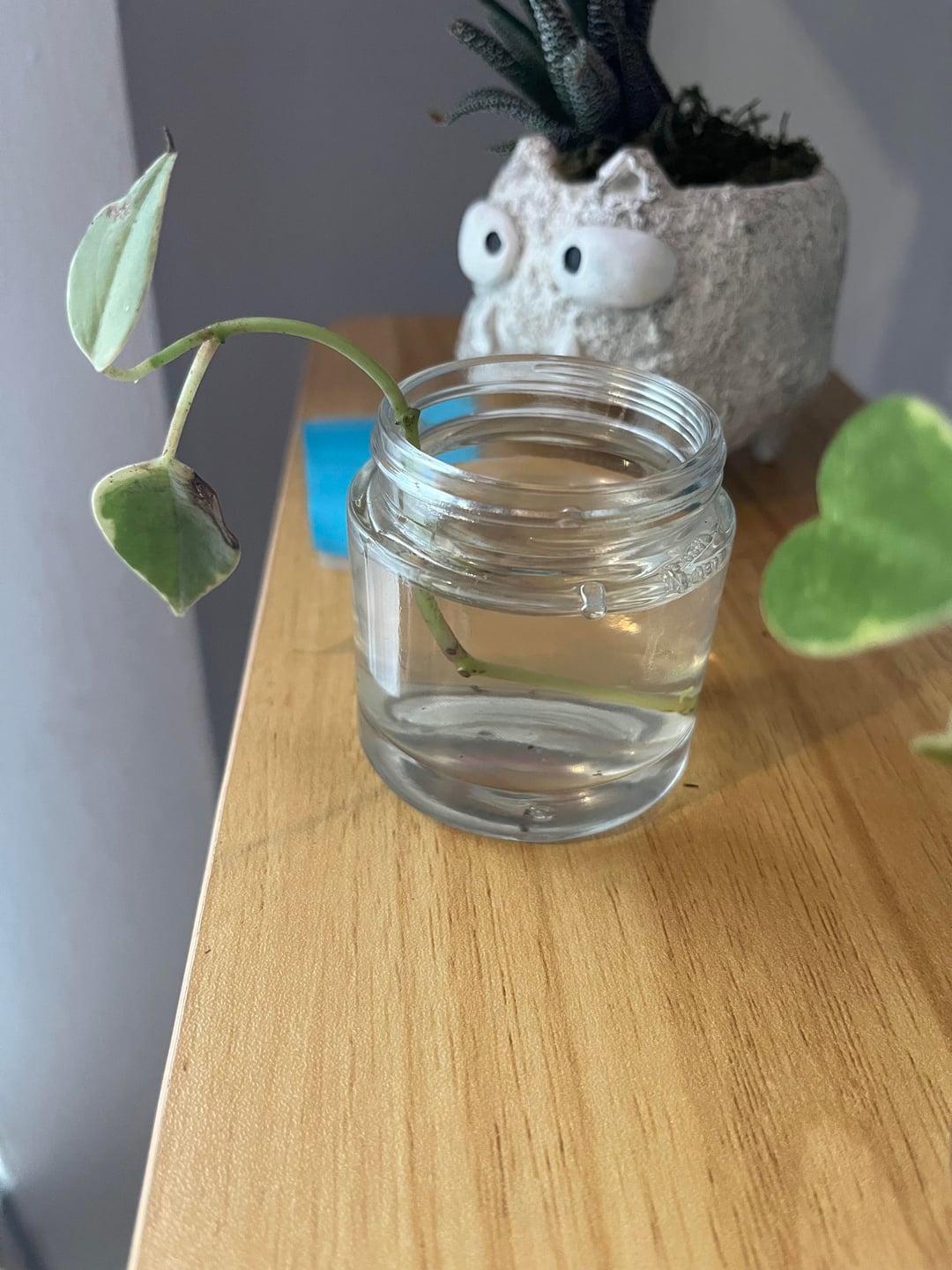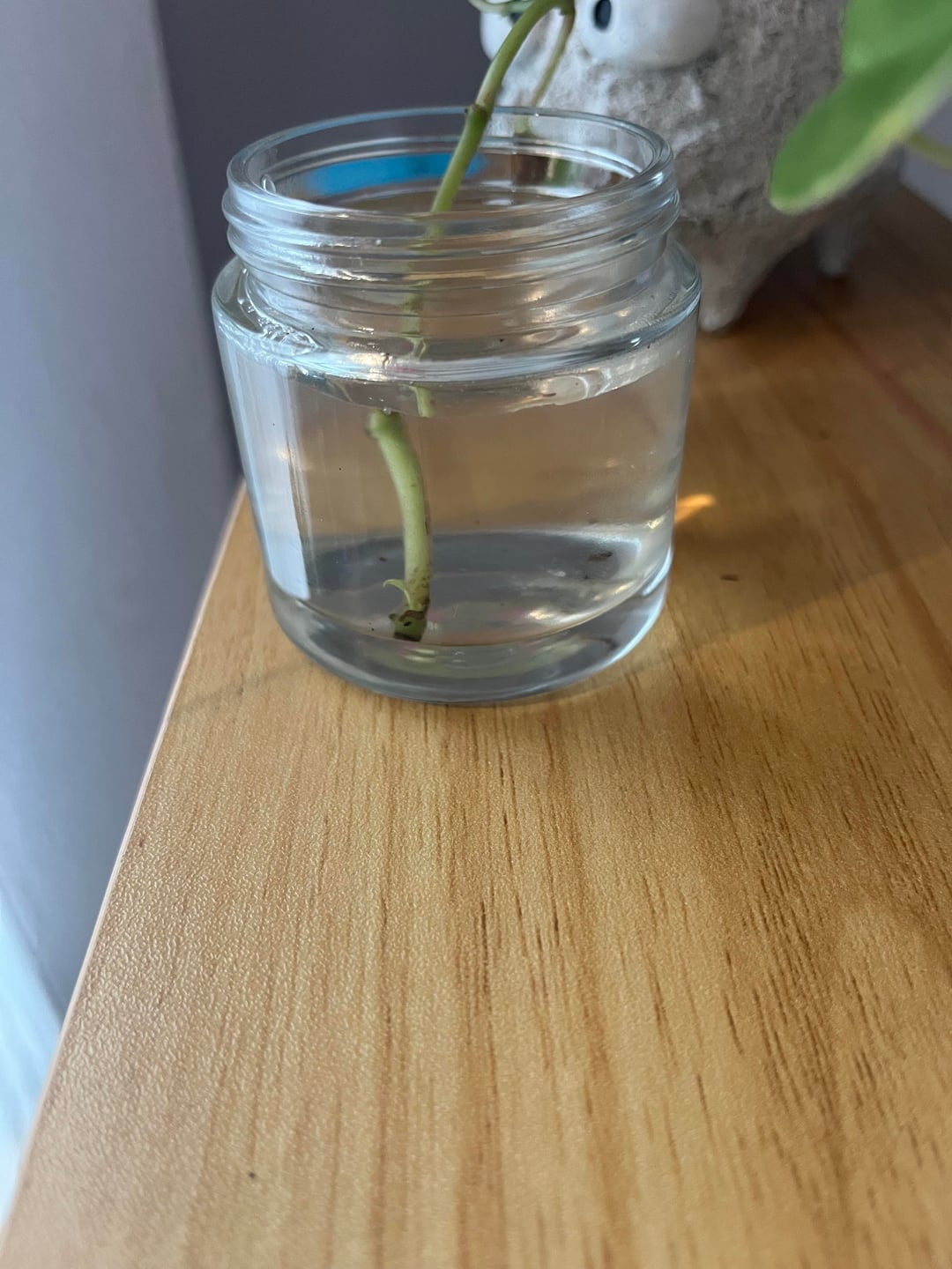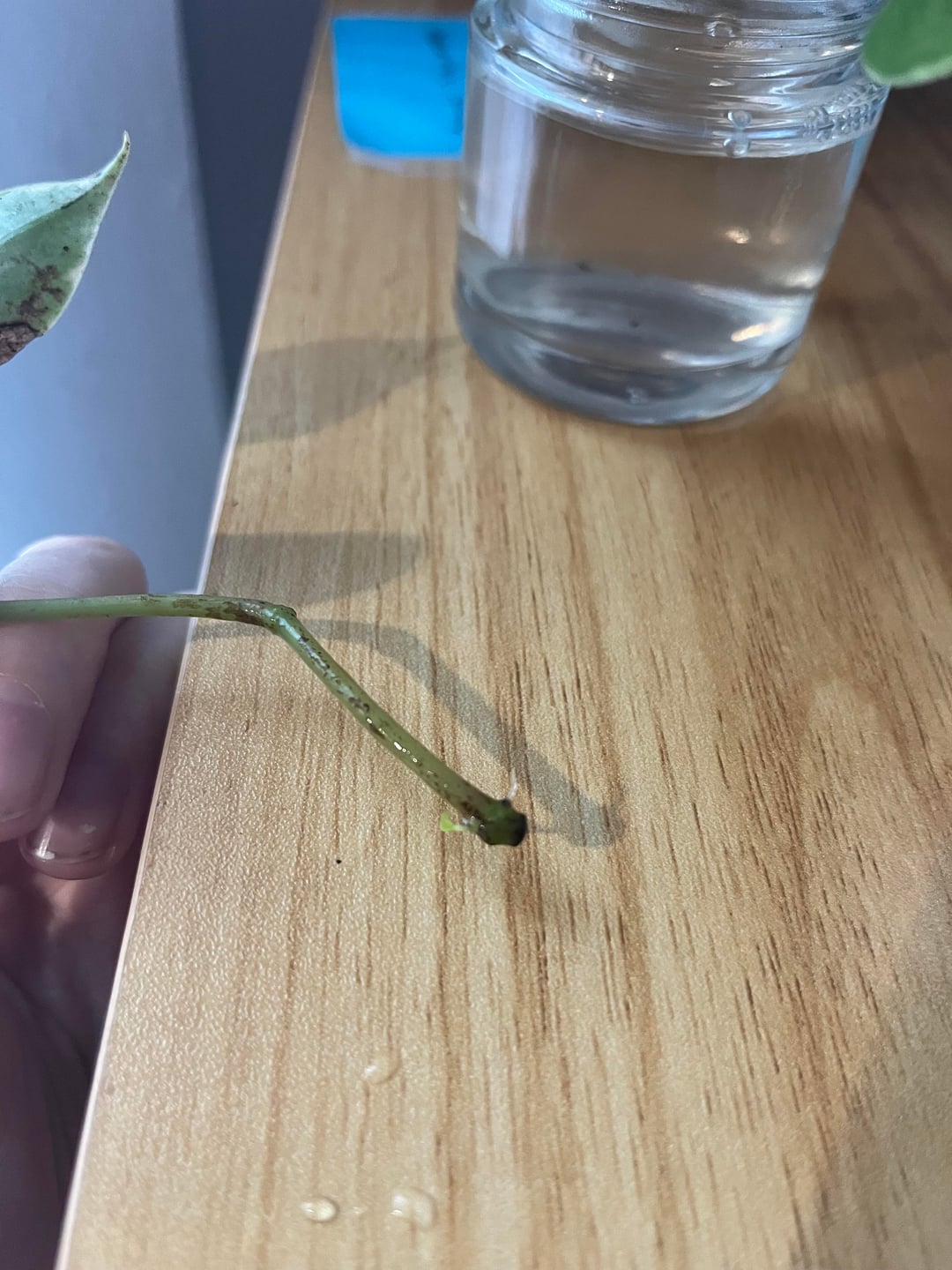 I’ve got a Cupid peperomia that’s a bit worse for wear (she suffered a fall a little while ago but she’s surviving 🥲), and I’m trying my hand at some propagations while pruning back. I was happy to see this guy start growing a little root, and then I noticed a little green leaf was growing right next to it! I just have the stem sitting in some water, getting indirect light. Is there an actual reason the plant would benefit from this growth, or should I remove it?