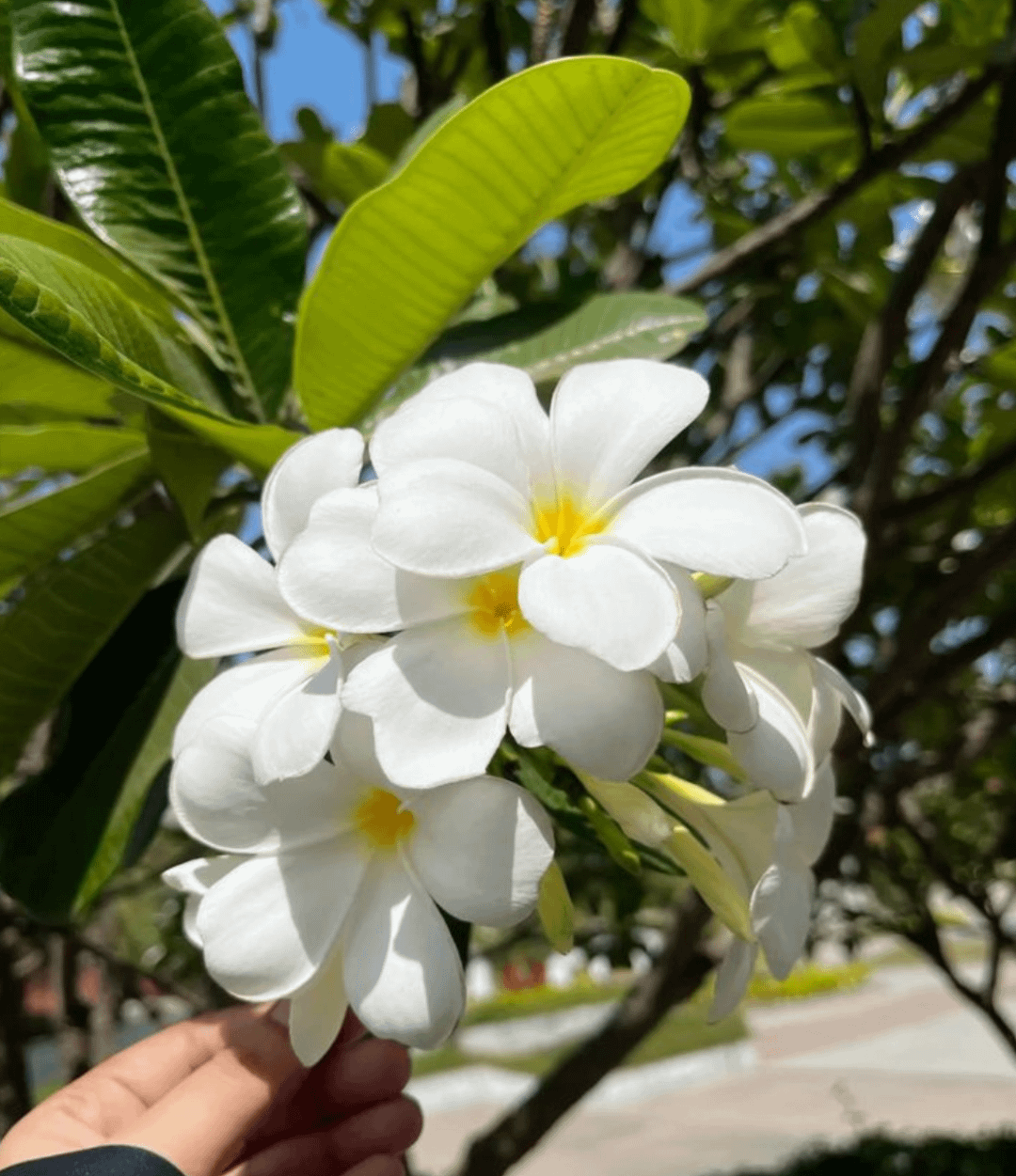 We had plumeria trees in our backyard when I was a kid on O’ahu! The sap is very sticky. We would climb up and gather blossoms in brown paper grocery bags to make leis for visitors. Sticky, fragrant memories.