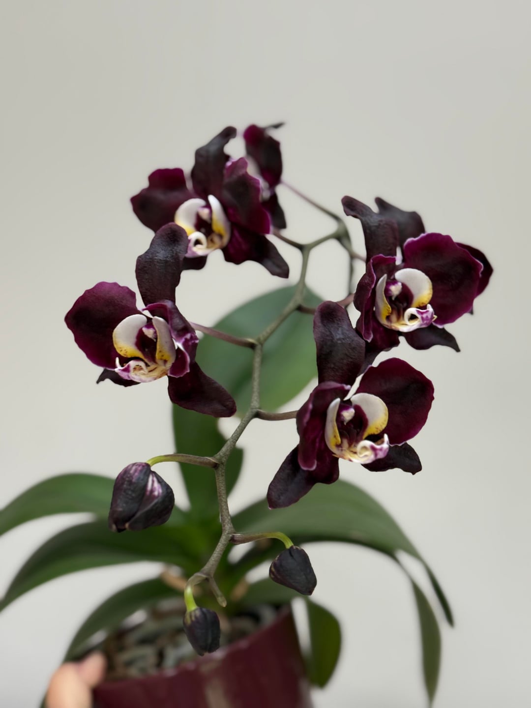 NoID Phal I got recently from another collector. I love her twisty, thick and waxy black blooms. by kathya77 Orchids 2 Comments thesneakyneeko 1 day ago Incredible. That color is so lovely. Goth garden! Bombadilloo 1 day ago Related to ’Kaoda Twinkle Chocolate Drop’ maybe? Is it peloric? https://preview.redd.it/kndr8khkh2vf1.jpeg?width=3840&format=pjpg&auto=webp&s=b19ff39528592db0272dd6c0d4a5c35987268b54