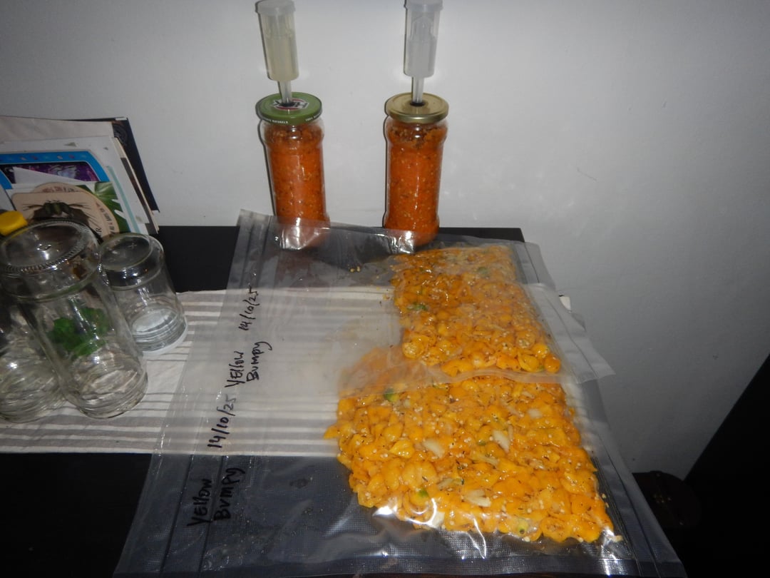 Chili Chump and his Youtube channel inspired me to try a vacuum bag mash for the Yellow Bumpy peppers.