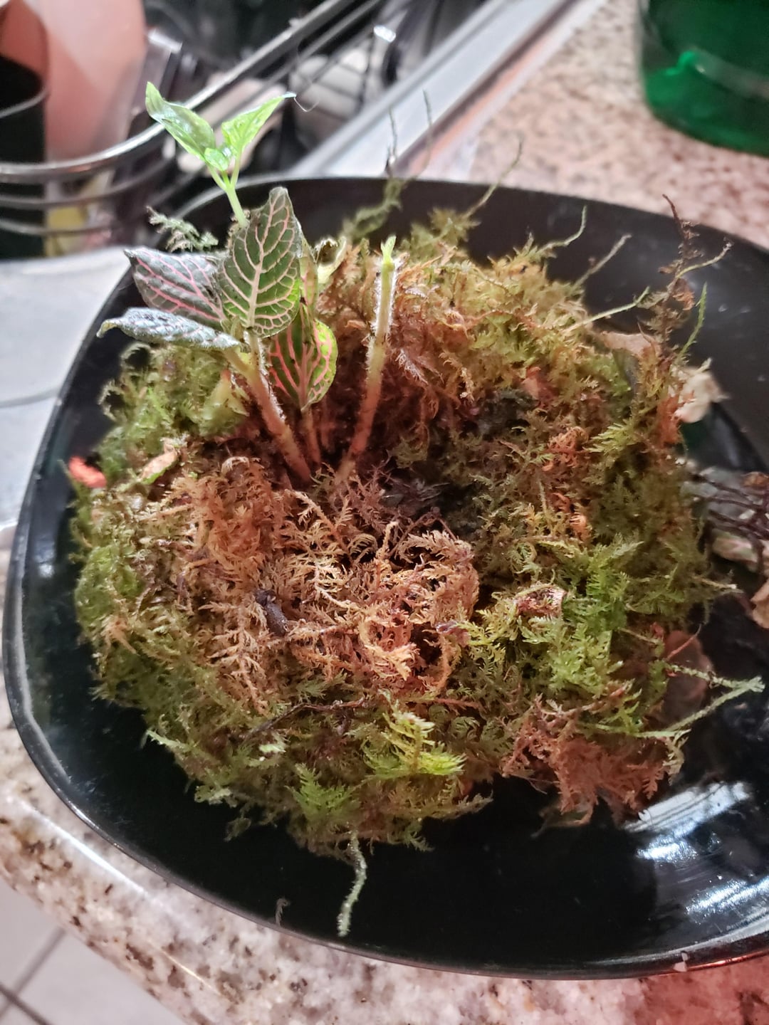 As for the moss, I tried looking it up but can't find the exact species. I think generally it says it needs indirect light and to be wet but not too wet