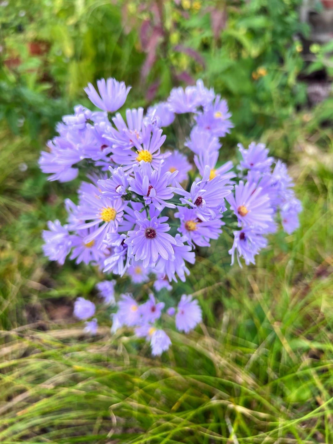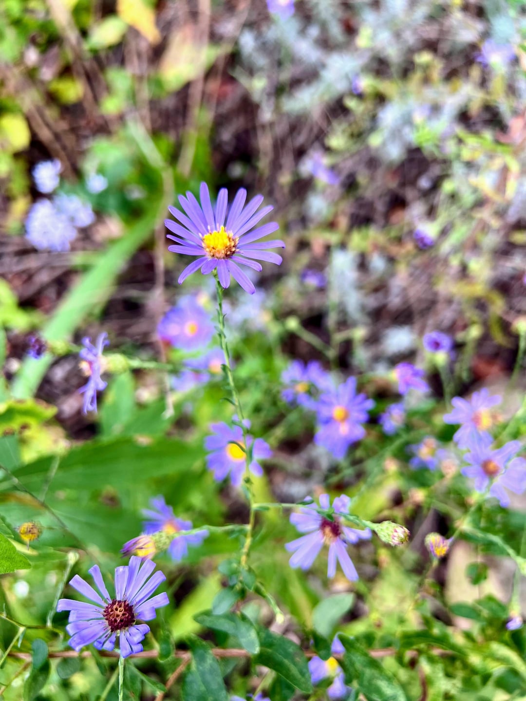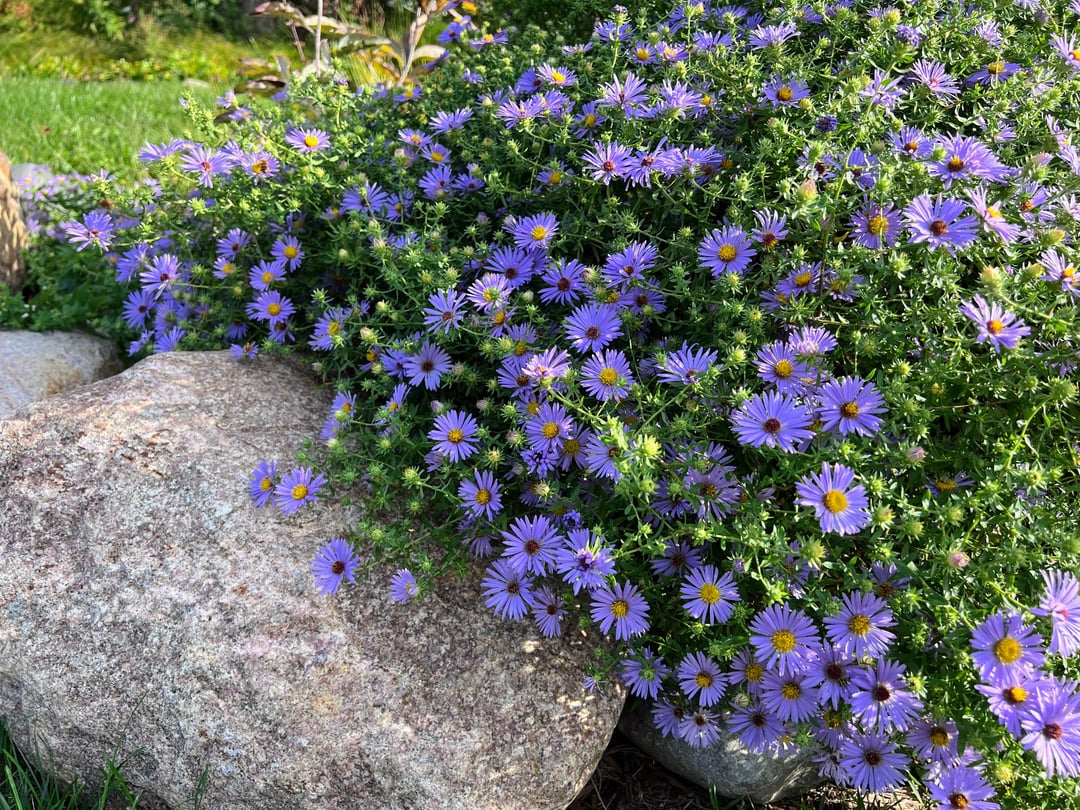 Smooth Blue Aster is my favorite; it's the first aster I planted at my house when we planted our Pocket Prairie in 2019! Calico Aster is new for me this year, and I can't remember if I planted it or if it's a volunteer. Last fall, I planted an Aromatic Aster cultivar called 'October Skies.' One of the plants has become a massive bush-like entity this year, growing much taller than the 18 inches it's supposed to reach. It might be the straight species of Aromatic Aster, which can be 3 feet tall, or it might just really like where I planted it.