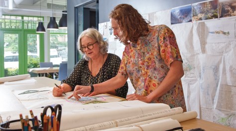 LandDesign principal Beth Poovey, ASLA, with Beck Redmon, Associate ASLA, a staff designer, in the Charlotte office. Image by Studio 323, Inc., photographs by Hugh Turbyfill.