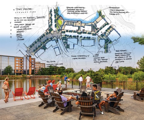 Richard Petersheim, ASLA, a partner in the Charlotte office who joined the firm in 1995 and is the firm’s resident captain of these complex exercises, says the pre-development processes are intricate, often relying on public-private partnerships and steady pacing to keep them economically plausible amid market fluctuations. Speaking of the development economy generally, Petersheim says the obstacles to success are sometimes incurable. “For every one great place that is transformative, you’ve got 10 that fail,” he says. “For a host of reasons, they take too long.” Some projects, he adds, “get alignment with the players at this snapshot in time, and then it takes five years to launch.”
