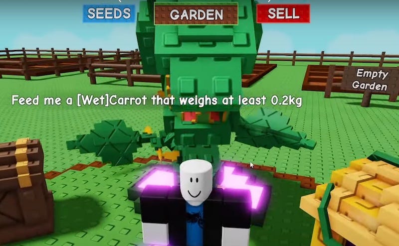Bringing the ‘offline’ paradigm to Roblox: As David Taylor noted on LinkedIn, there’s a reason the game’s icon says ‘Grows Offline’: “Offline is an innovative mechanic never seen before… [bringing] players back time and again to see what they grew.” You may be: not innovative? But it is for Roblox, where the idea that things happen while you’re not logged in is an alien concept. (It’s also a retention aid to Roblox as a platform, since you can play other games & come back.)