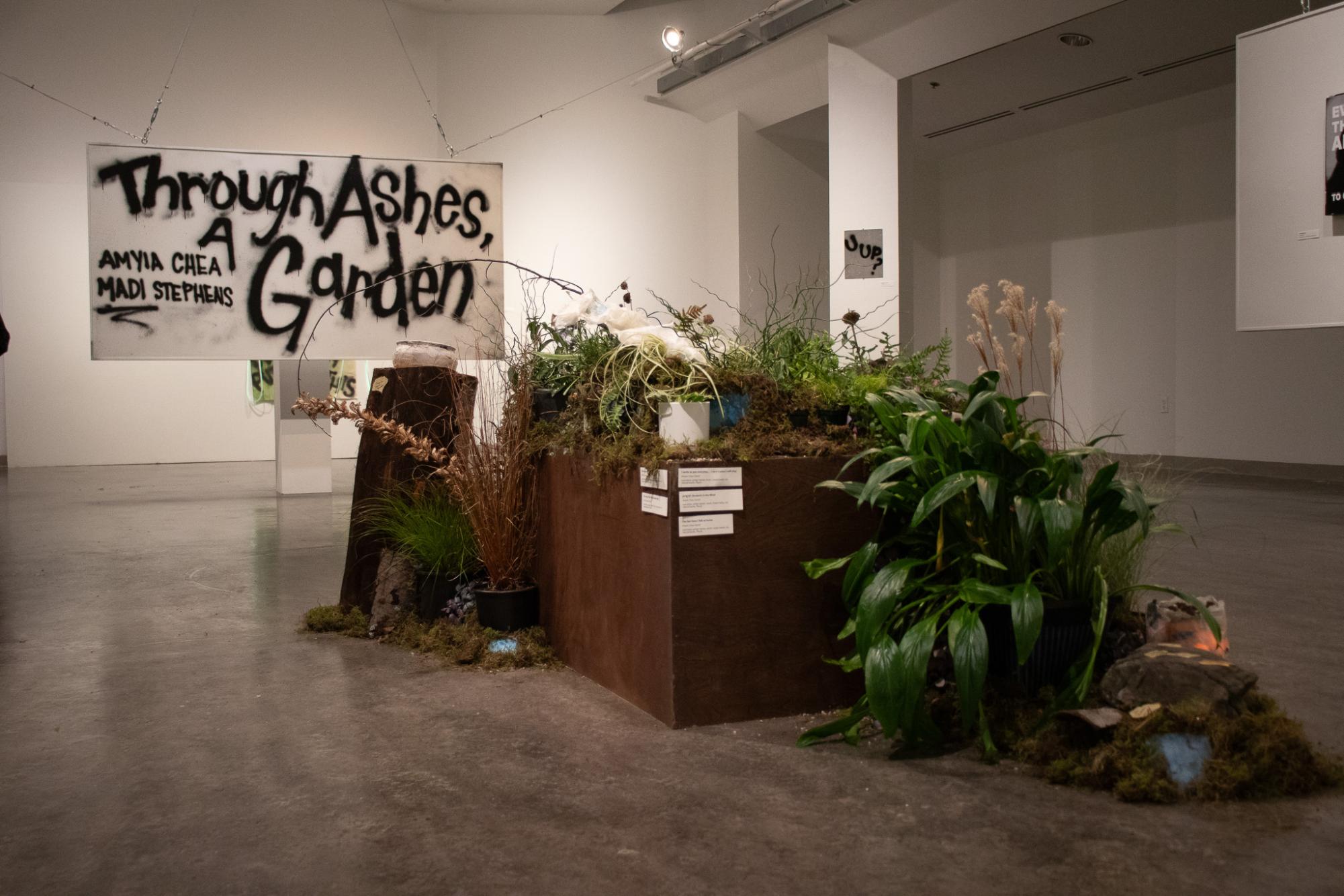 along with supplementary pieces not included in the exhibit itself. Completed by students just a year younger than Stephens and Chea-Carrol, the pieces focus on different types of media, similar to “Through Ashes, a Garden,” but completed during an on-site residency in Leavenworth, Wash.