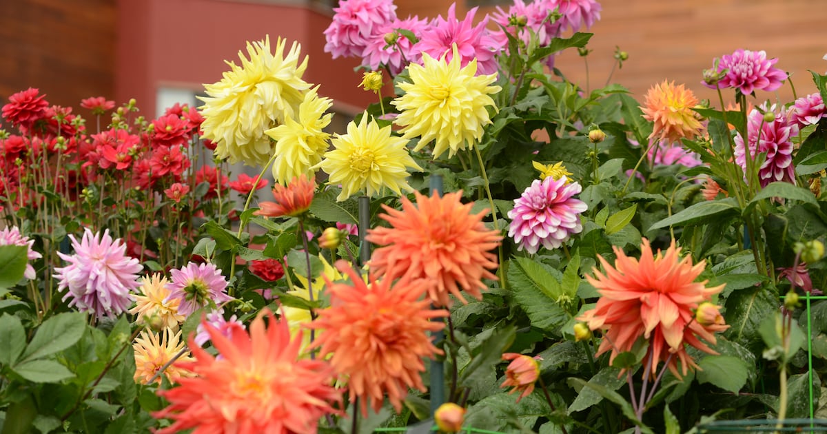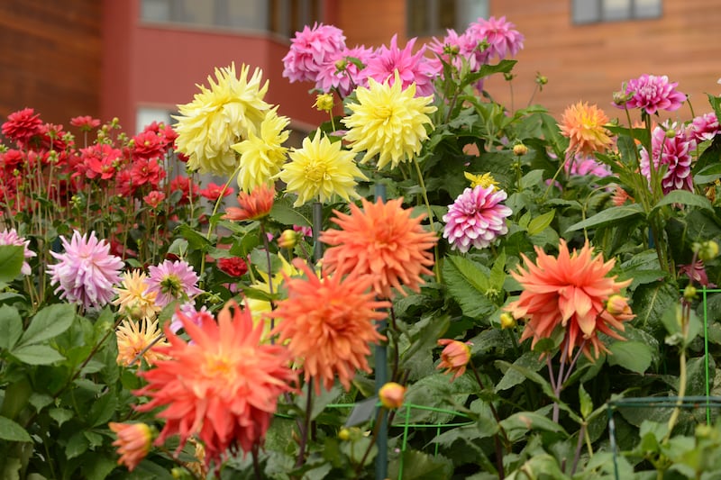 Late-blooming dahlias grace the edge of a parking lot on 9th Ave, Oct. 8, 2018. (Anne Raup / ADN)
