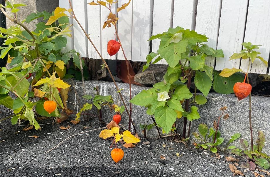 arthropal 3 days ago [https://en.wikipedia.org/wiki/Alkekengi](https://en.wikipedia.org/wiki/Alkekengi) In my area, known as “Chinese Lantern”. Related to Ground Cherry, which looks very similar in all respects except that it has a tan paper with a yellow berry inside whereas this has a vibrant orange paper with a red-orange berry.