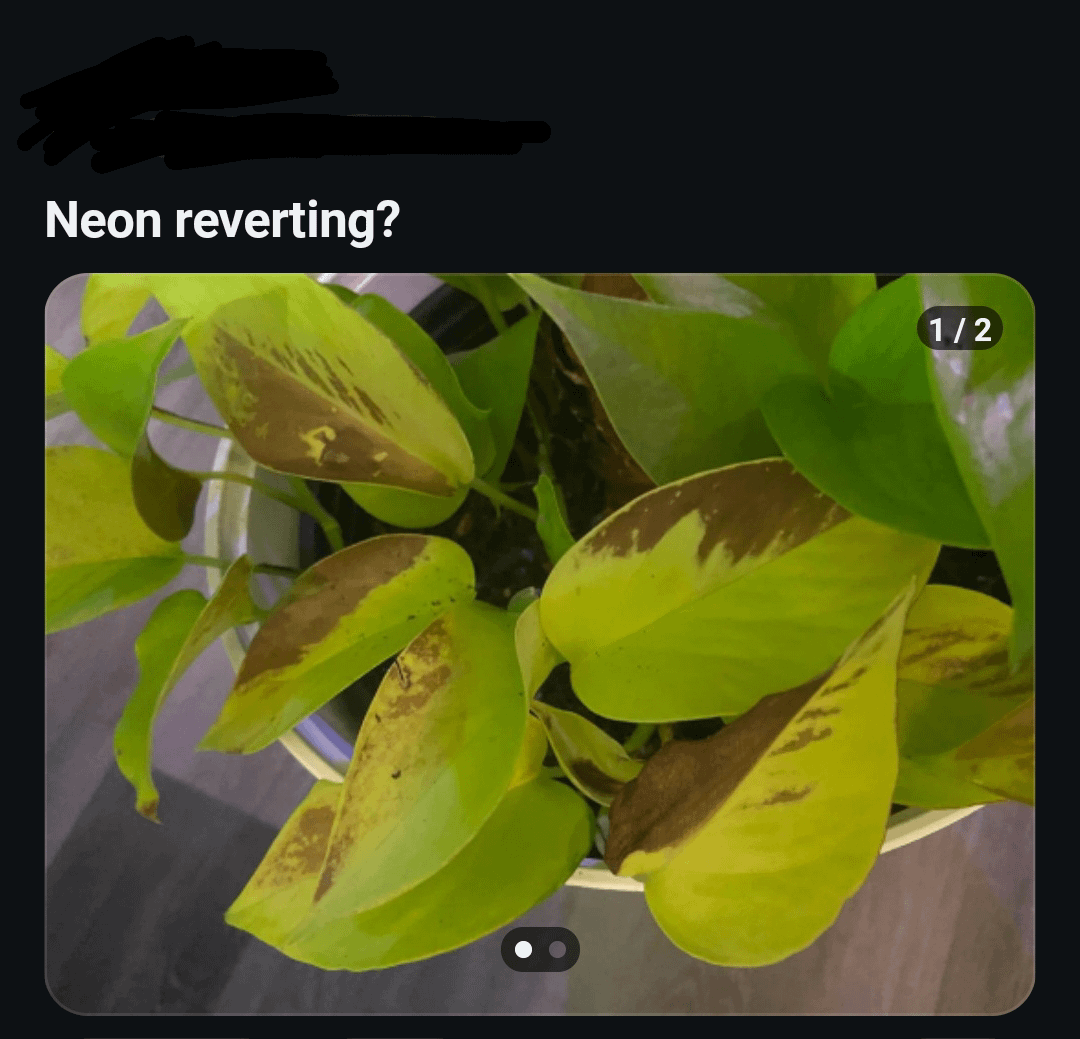 I wish my pothos was reverting too because that variegation is so beautiful 😩 by vanillalover111 Houseplants Circle Jerk 3 Comments Local_business_disco 2 days ago Water it more. JavlaTjej 2 days ago No it’s evolving … into a 💩plant -garlic-thot- 2 days ago So rare 😍😍 brown varigashin is the best !!1!1!!!