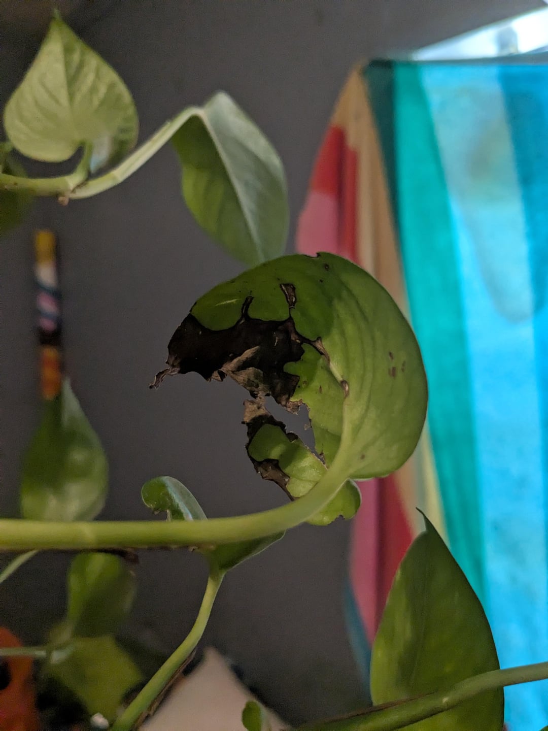 – the brown leaf looks like it got torn/damaged in some way. Maybe low humidity when it unfurled? Unsure