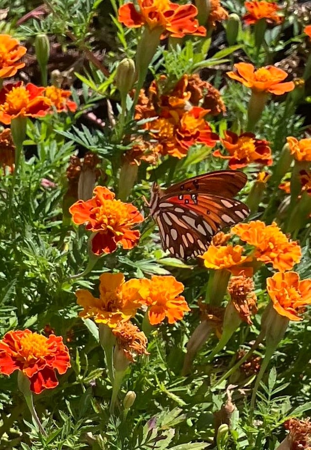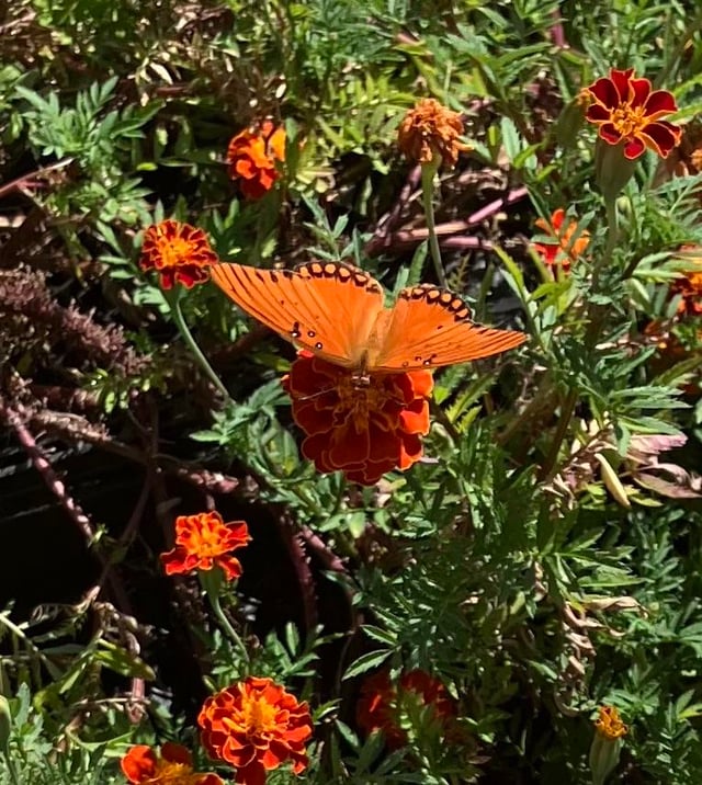 Beautiful butterflies on my flowers!! what kind? by OrganizationCalm8688 flowers 7 Comments WesternMainer 2 weeks ago Where are you located? Gulf Fritillary maybe? No_Weird 2 weeks ago Looks like marigolds book67 2 weeks ago Definitely gulf fritillary. Try to get a look at the undersides of the wings, beautiful silvery spots, sorry I don’t have a photo handy to show you https://preview.redd.it/xunybjhh8ivf1.jpeg?width=3024&format=pjpg&auto=webp&s=7063ee4f4839d3b05a0fbe96c50abb469b30d0bf sc19957 2 weeks ago All decked out for fall!🍁 T1o2n4y 2 weeks ago Most probably a Gulf Fritillary (*Agraulis vanillae*). No-Impress7430 2 weeks ago They are so beautiful BuffaloOk7264 2 weeks ago Looks like marigolds!