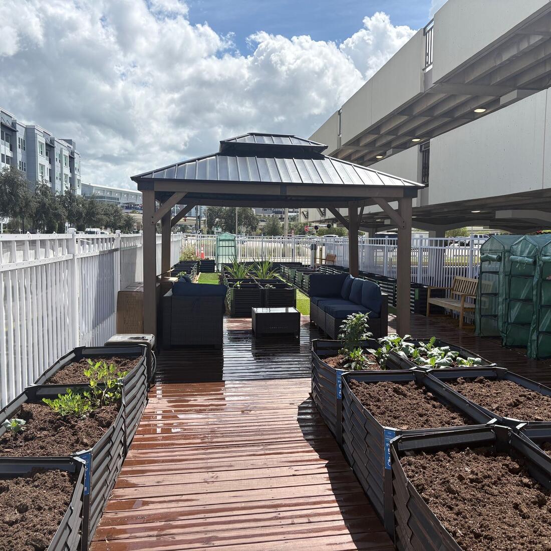 Located on the east side of the Whiting Street Garage, this new community garden will feature 54 raised beds (2’x2’x4′), with 41 available to City of Tampa residents ages 18 and older. Applicants may request up to two beds for planting, and gardening tools will be available on site.