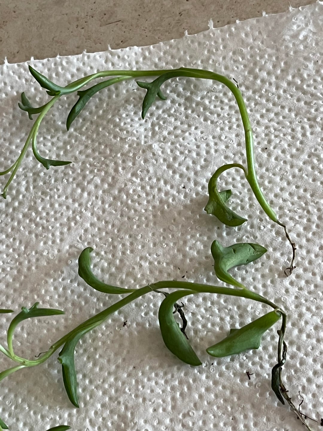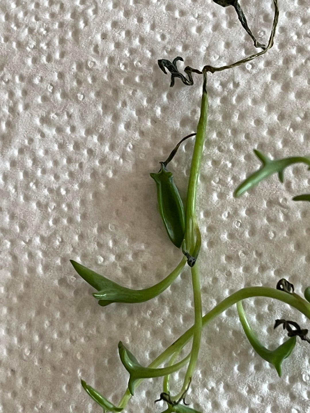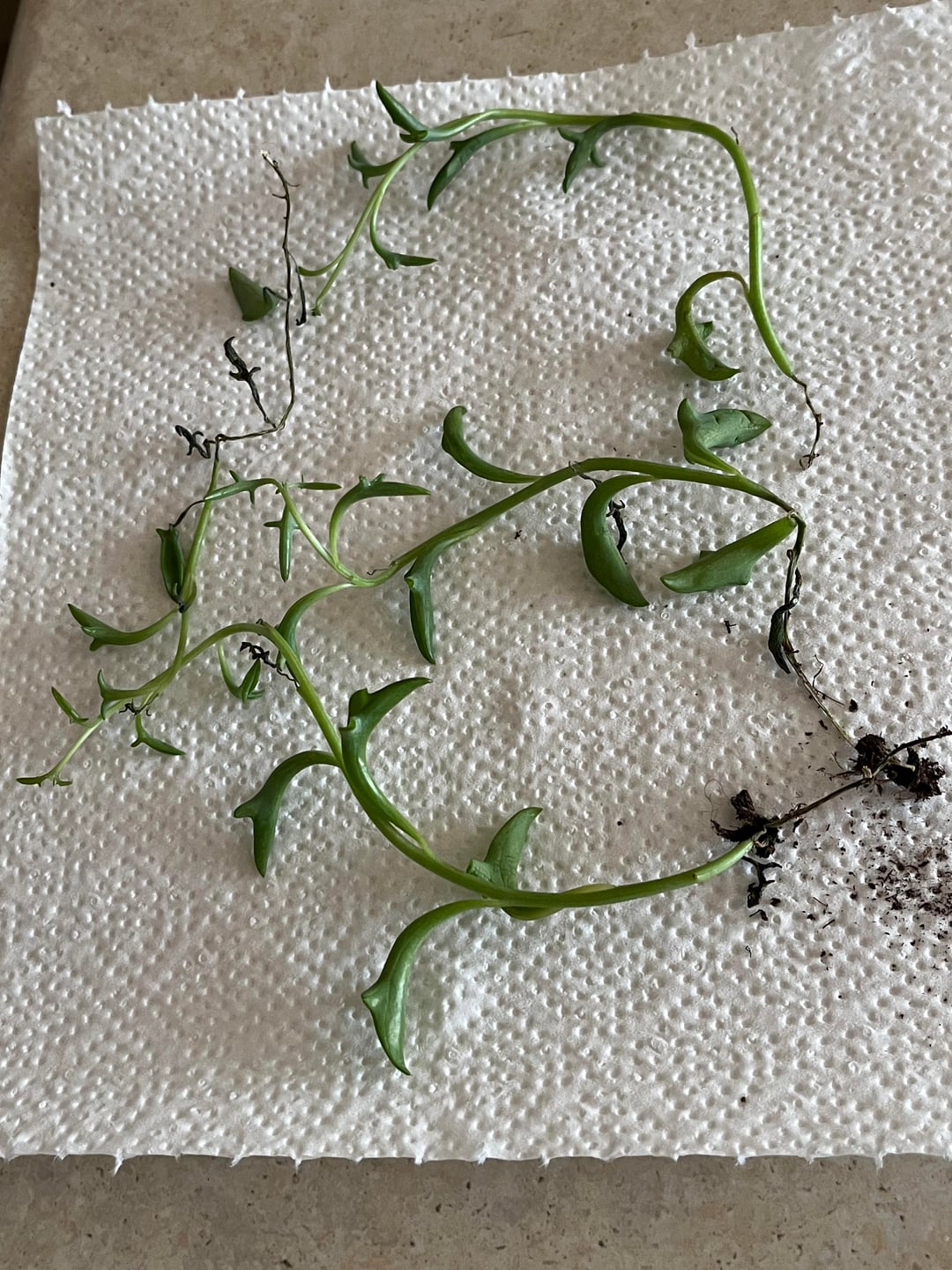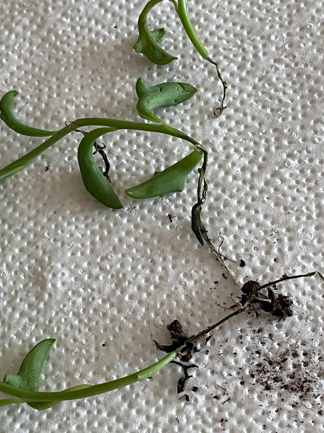 I fell in love when I seen a post with these dolphins! But I never have really ever seen or heard anyone near where I live in Australia. So I was super excited to see them, so I grabbed them and came home. I ain’t got the best sunlight condition in my unit unfortunately. I do have a few lights though but because I havnt really had much to do with succulents and stuff my knowledge is minimal of everything about them pretty much apart from don’t keep them soggy or water too much. Anyway as you can see in the pic there ain’t many strands of dolphins left in the pot. What you see on the paper, is the rest of what was in there…. And I’ve only had it a bit over 2-3weeks. I watered it when I got home coz it was bone dry…. But I bottom watered coz there are fungus gnats hanging around the units right now