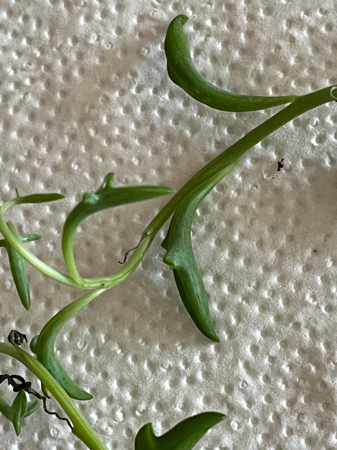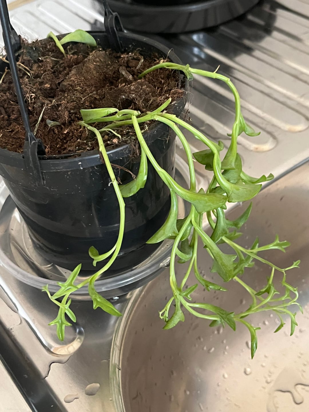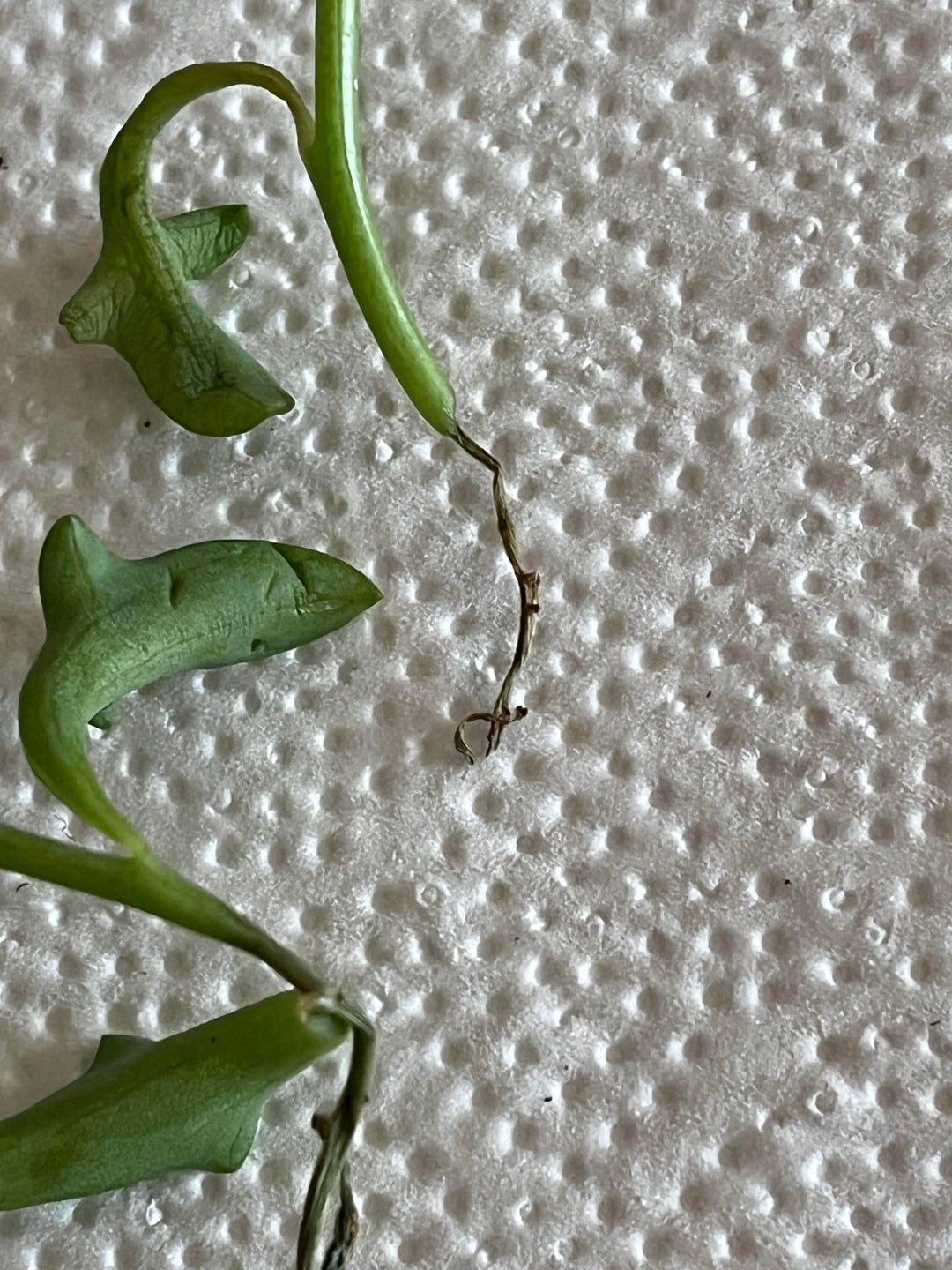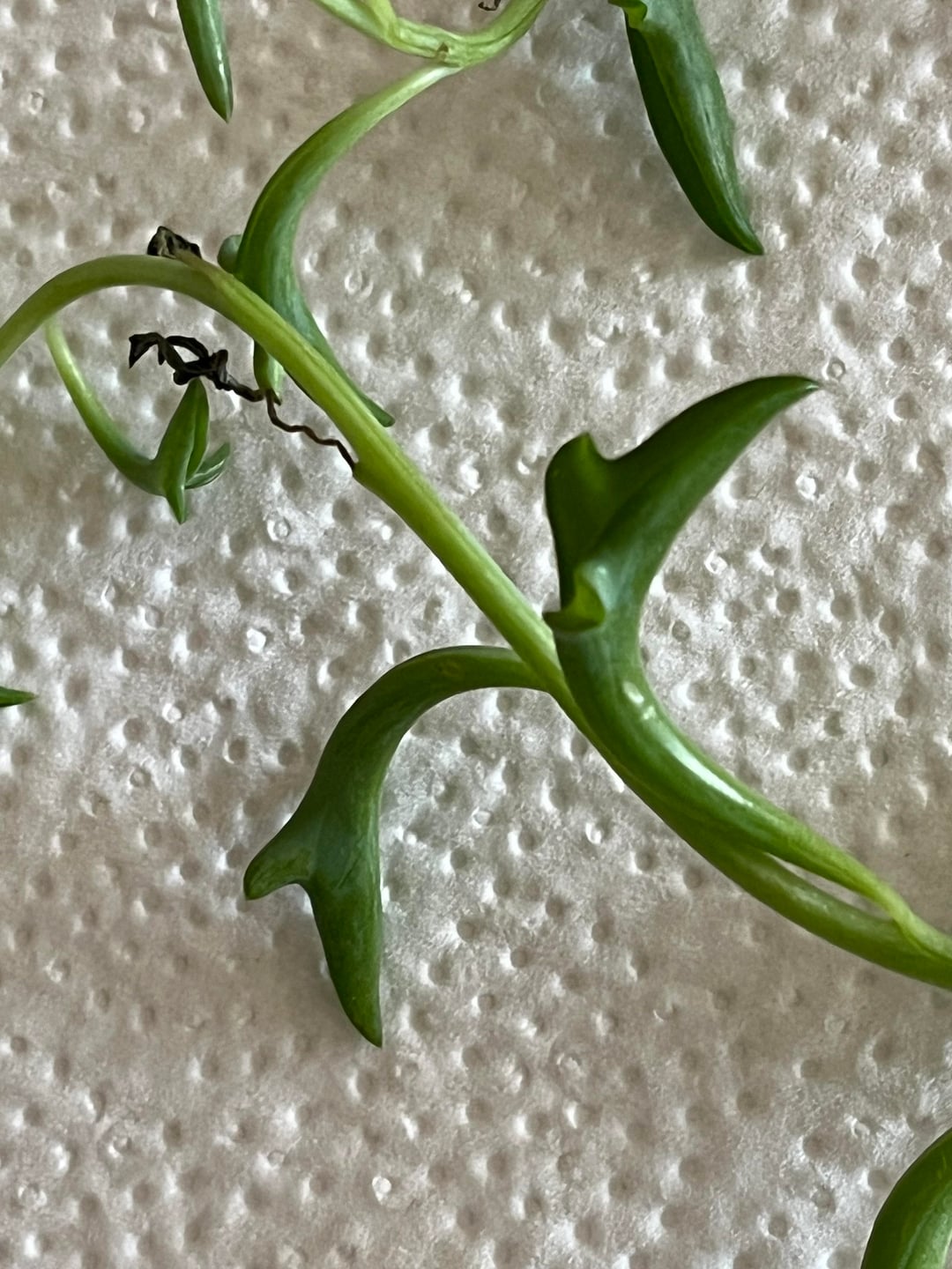I fell in love when I seen a post with these dolphins! But I never have really ever seen or heard anyone near where I live in Australia. So I was super excited to see them, so I grabbed them and came home. I ain’t got the best sunlight condition in my unit unfortunately. I do have a few lights though but because I havnt really had much to do with succulents and stuff my knowledge is minimal of everything about them pretty much apart from don’t keep them soggy or water too much. Anyway as you can see in the pic there ain’t many strands of dolphins left in the pot. What you see on the paper, is the rest of what was in there…. And I’ve only had it a bit over 2-3weeks. I watered it when I got home coz it was bone dry…. But I bottom watered coz there are fungus gnats hanging around the units right now