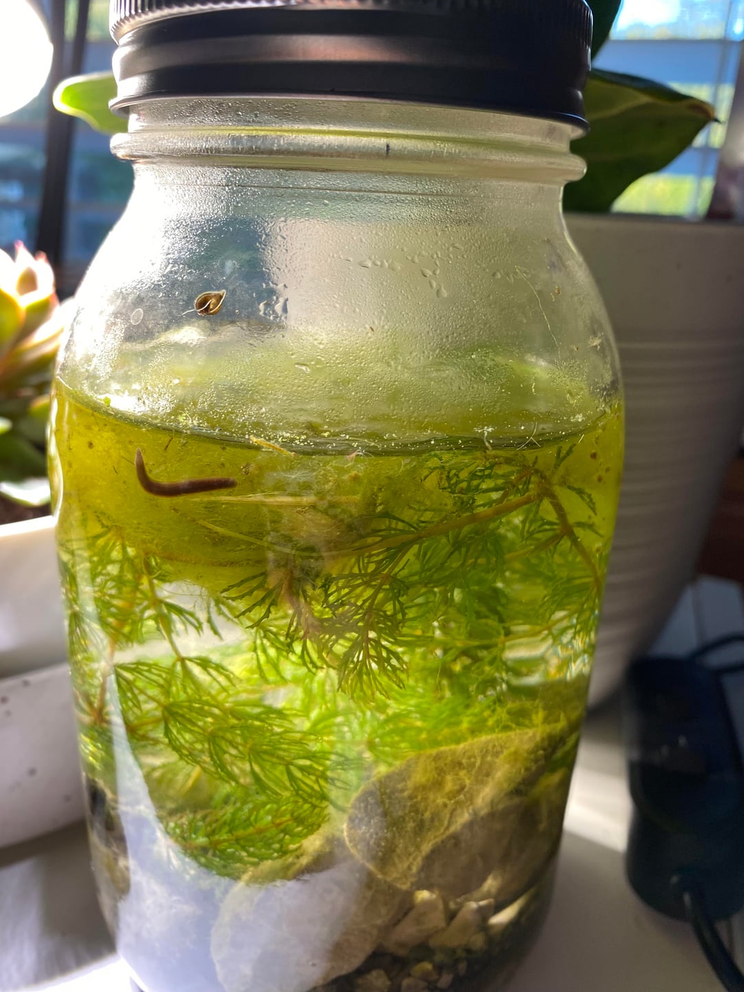 I’m 90% its a leech but correct me if i’m wrong by SignificanceFar3573 Closed EcosystemsEcospheresminiatureself sustainingself-contained 4 Comments toadsterrr 2 weeks ago Yeah looks like a leech, you could try to pull it out with tweezers and dispose of it machinemadeonce 2 weeks ago No. The Jar has spoken. -Jar Embarrassed_Falcon54 2 weeks ago Just curious, why would you want to get rid of it? ad_duncan_ 2 weeks ago Thought this was in r/pickles for a moment there…