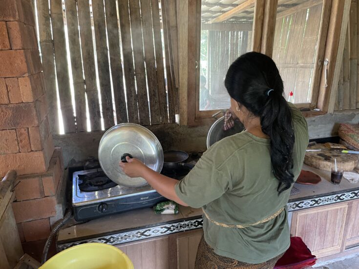 Nyoman Godem’s wife cooking in the kitchen at Rimba Garden School. Photo: Maria Xaver Dover