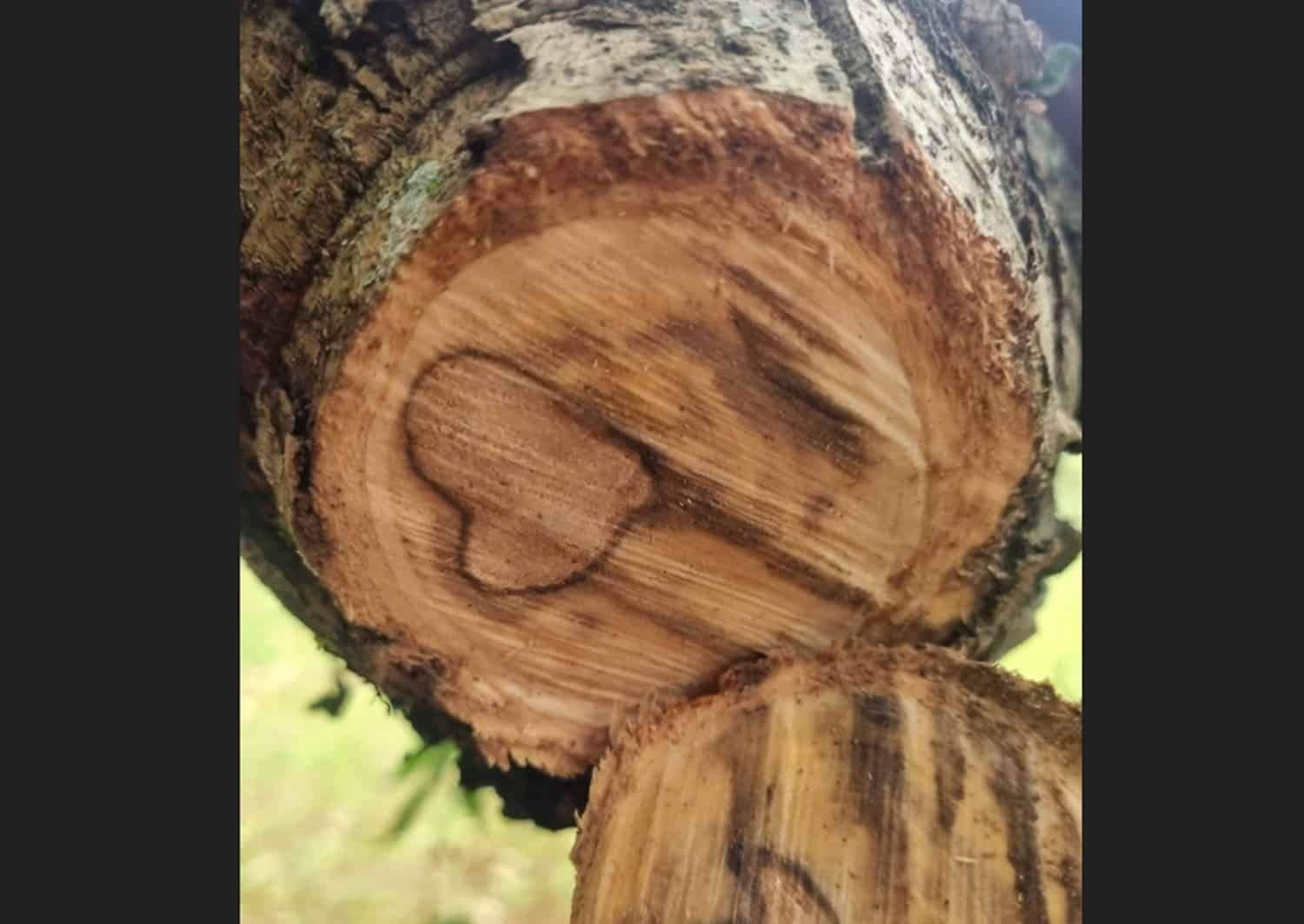 As his saw sliced cleanly through a tree branch, he stopped in surprise — staring at a near-perfect heart shape inside the wood.