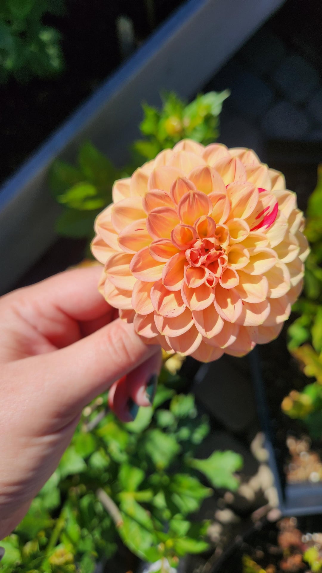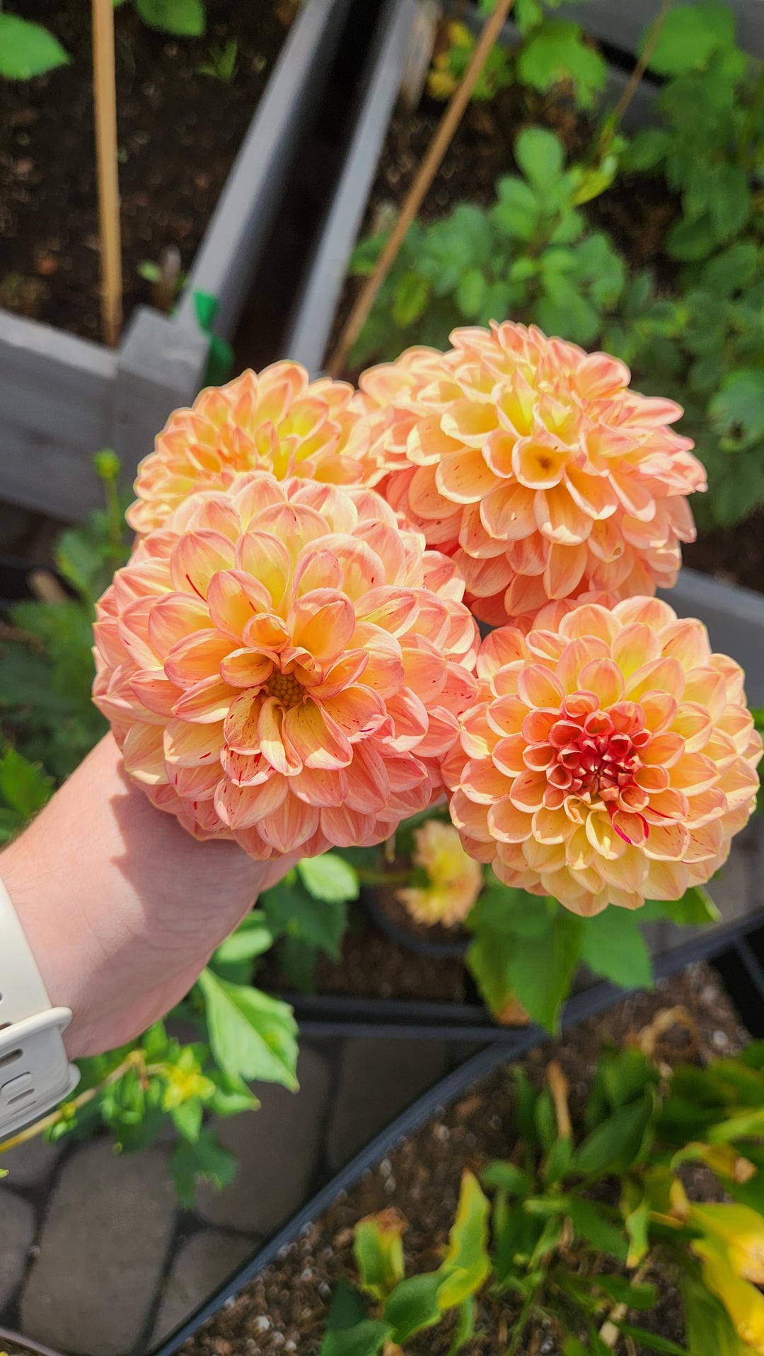 They started out kinda deeper peachy and have lightened up to more peachy apricot colors the more they've bloomed. Images are newer blooms to older blooms by WhoPutThatThere dahlias 1 Comment kelsco1 1 day ago Beautiful 😍