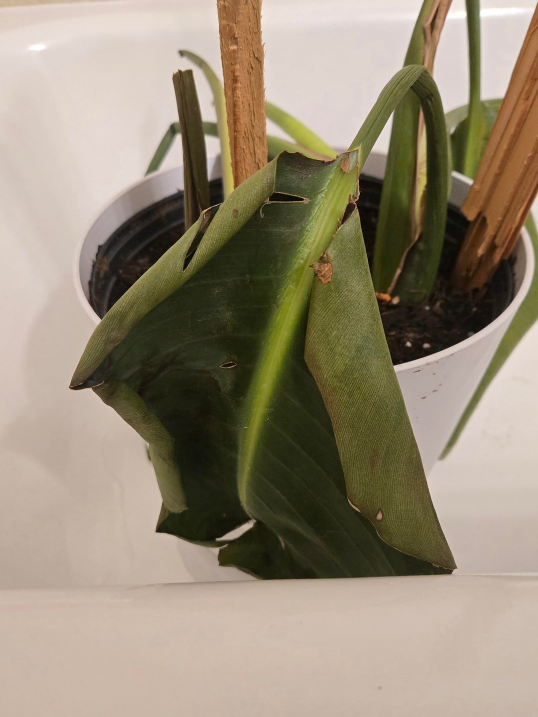 So this plant has only been inside my apartment since the day my friend brought it over from the grocery store about 2 months ago. It was the only plant in my house and I had it set by the screened window near my desk the whole time. About 5 days ago, I found a very very sick bird of paradise that was practically rotting outside and brought it inside and hosed it off and kept it literally 2 rooms away from my Swiss Cheese plant. I didn't notice any bugs on it or anything like that and still don't see any on it but now my Swiss Cheese has these red bugs on it and also what appears to be little white like worm or eggs on the bottom of the leaves now. Can anyone give me any idea of what they are, whats going on, as in where did these come from and could it have been the bird of paradise I brought inside even tho it was kept 2 rooms away from my Swiss Cheese plant? I do not have a green thumb AT ALL, so I don't even know how to begin to get rid of them and how do I prevent this ever happening again? Any advice is appreciated ! Thank you so much! I have also added a picture of the bird of paradise just in case taking a look at it might help determine if it looks infested and I just don't see it or something. Thanks again!