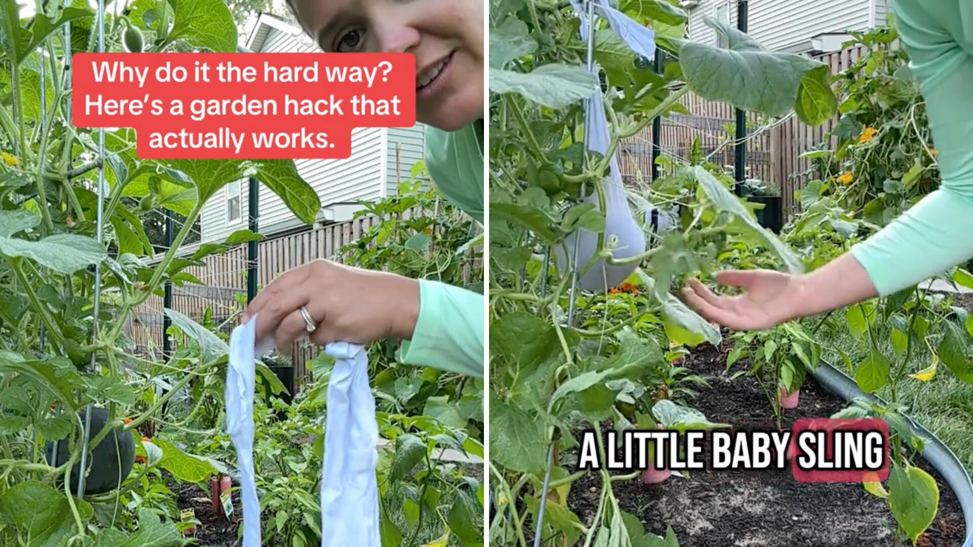 One home gardener, Niki Mumey (@thenikimumey), shared a TikTok video teaching other home gardeners a DIY hack she uses to make her own melon cradles for her garden.