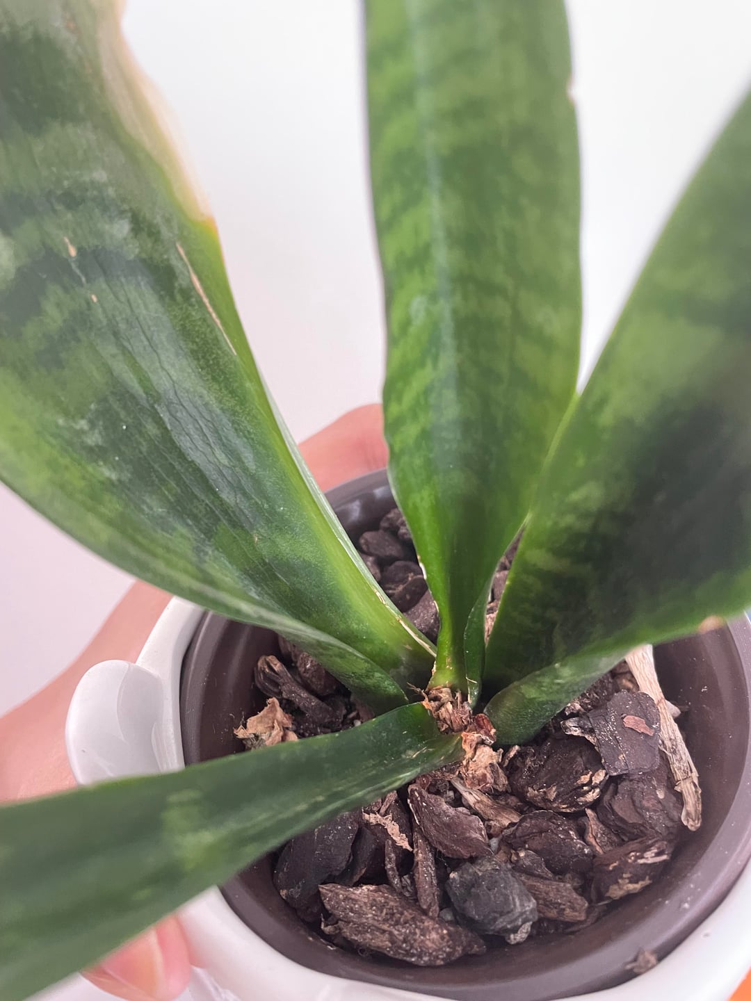 this snake plant hasn't grown in years, it put out a pup a year or 2 ago and that one's doing well. i think the crown (?) is rotten/dead (see first pic) so i'm wondering if it's able to put out any new growth at all. it gets some direct sunlight in the afternoon, watered once fully dried and i was fertilizing during the summer. is there anything i can do or should i just give up