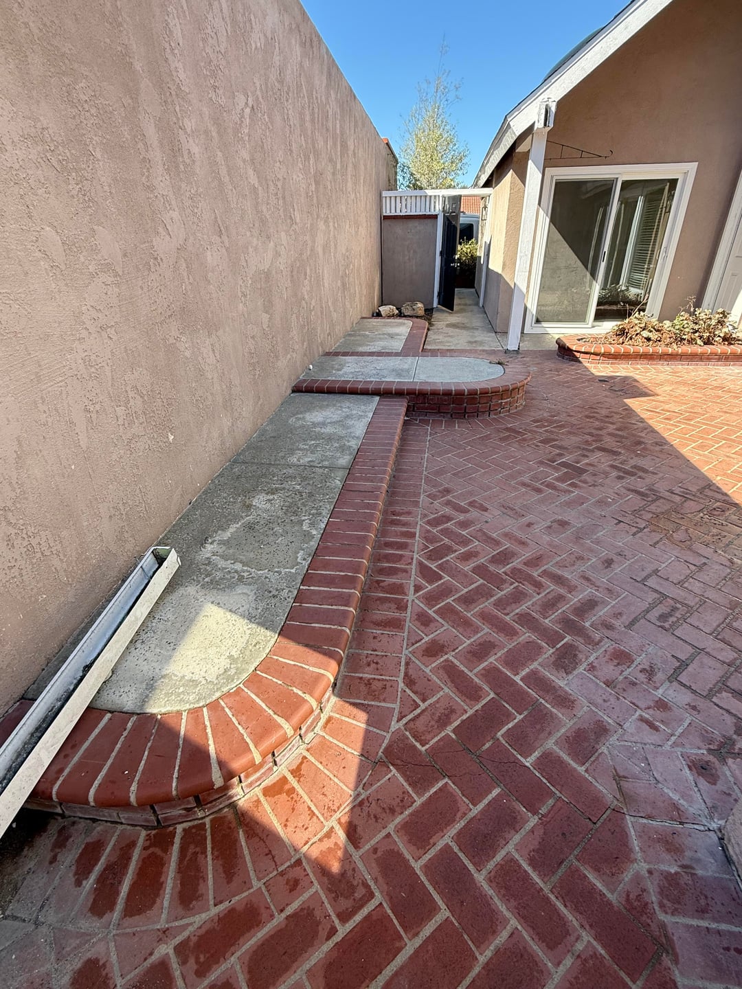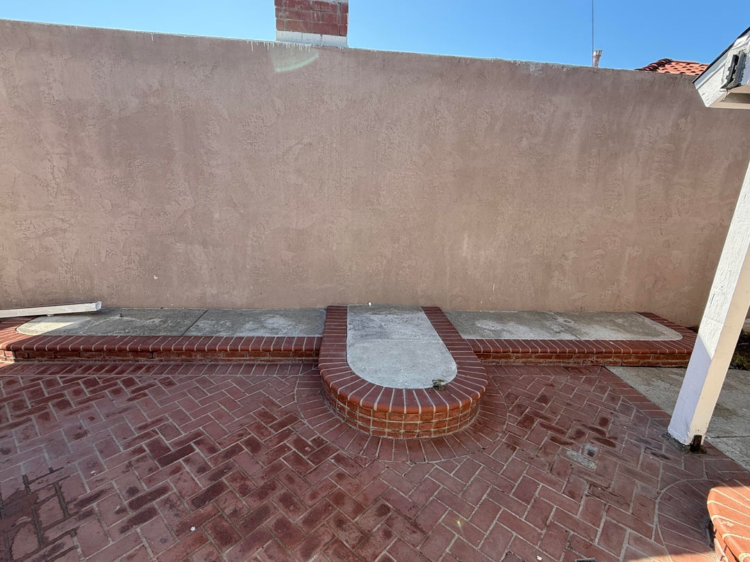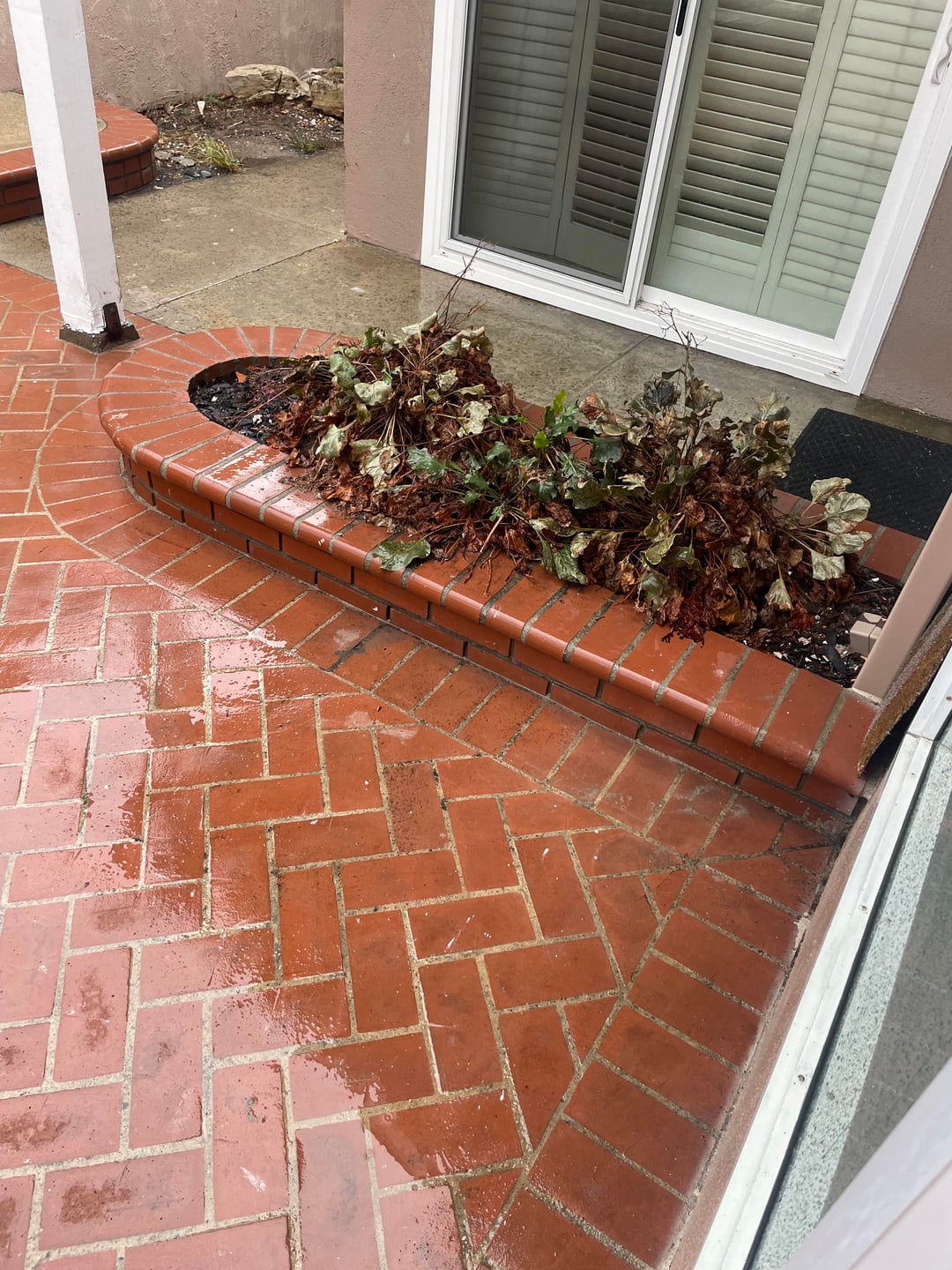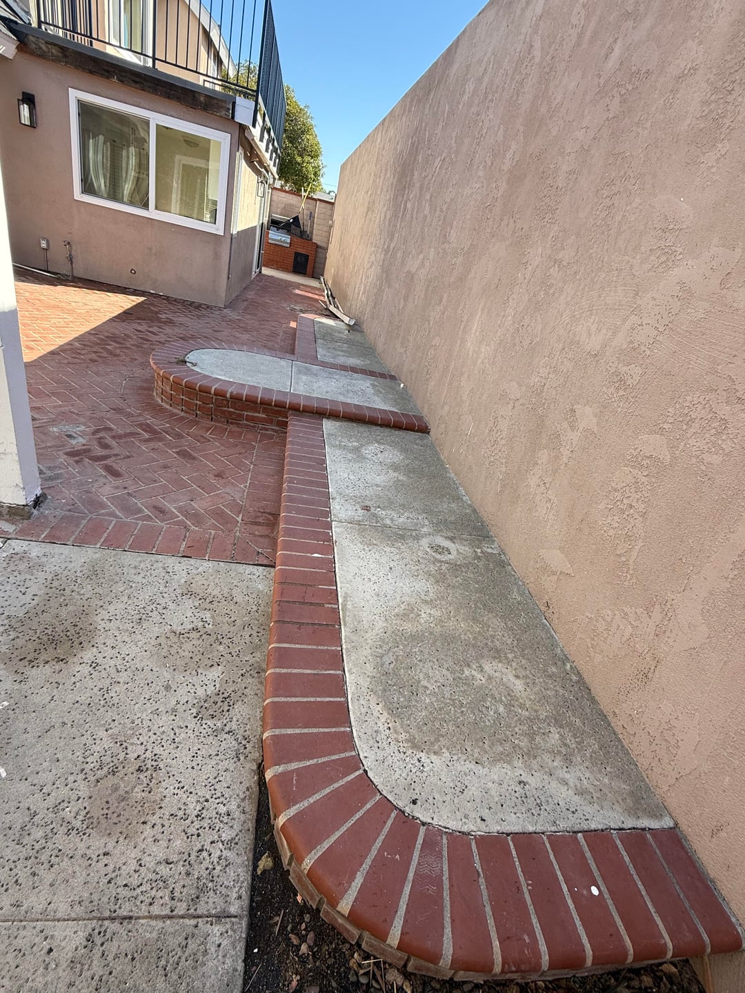 I like them for flower beds, so I’d cut and dig out the concrete trying to save the brick and wall.