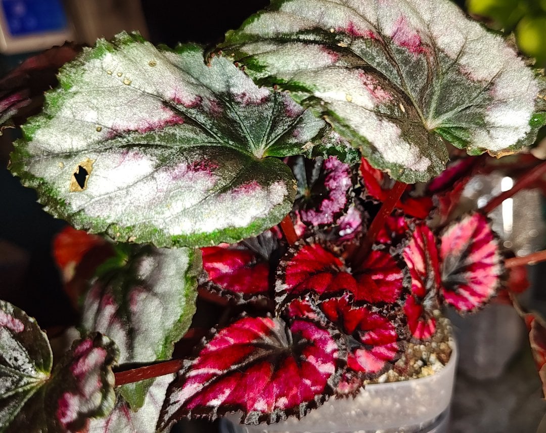 You said grow light, can you elaborate? Your watering and humidity conditions and how long you have the light on? Is it a white grow light or red white and blue? I’m experimenting with a begonia I had outside in indirect light that seemed to lose its color like it was bleaching…