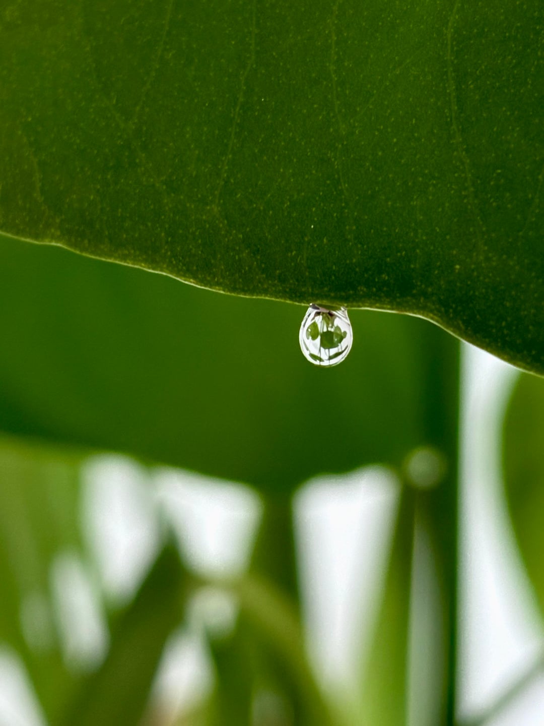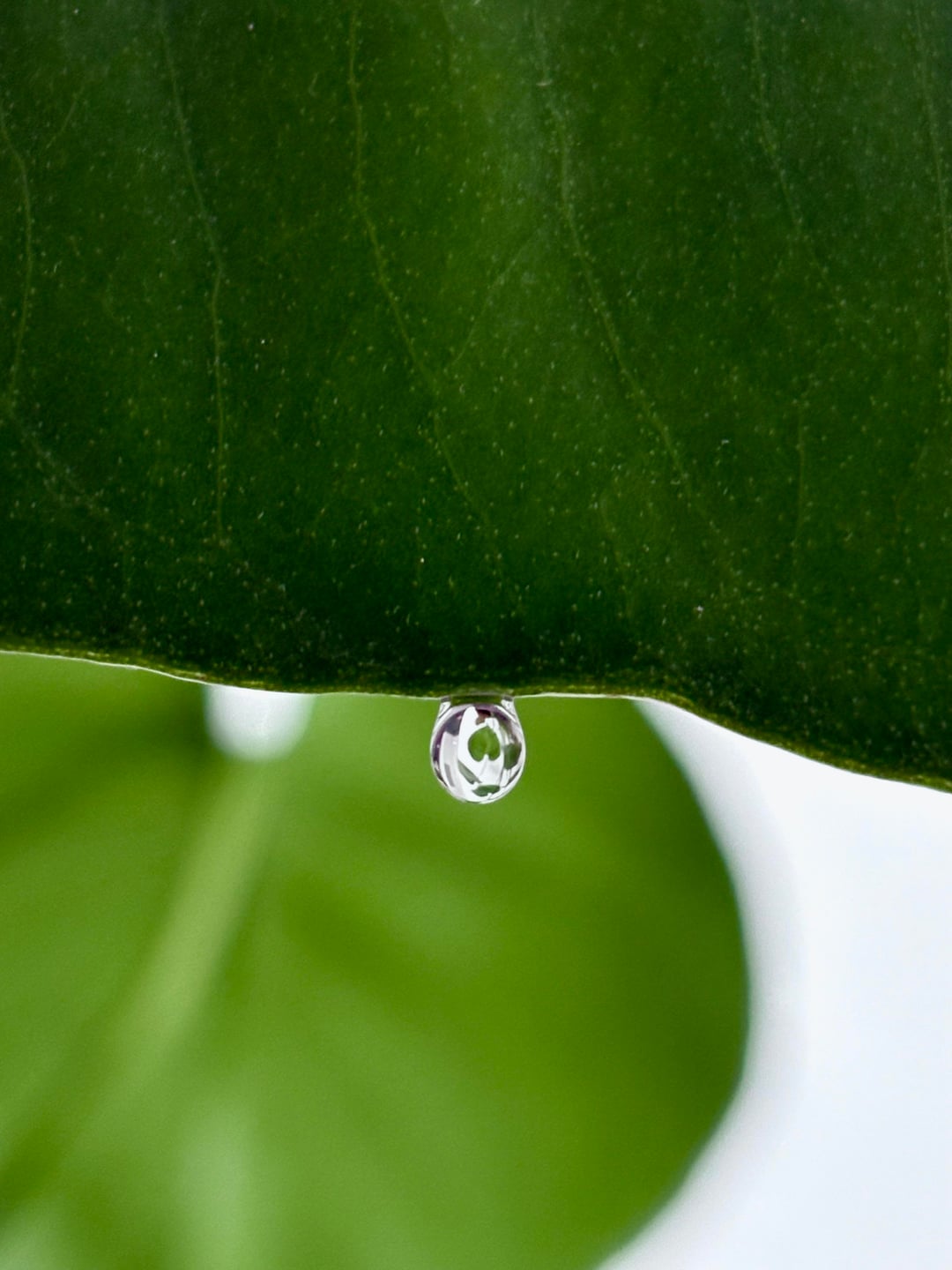 Was watering my monstera (which I purchased 3 months ago) this morning and noticed that this little water drop on one of the leaves reflects the entire plant in it like a crystal ball!